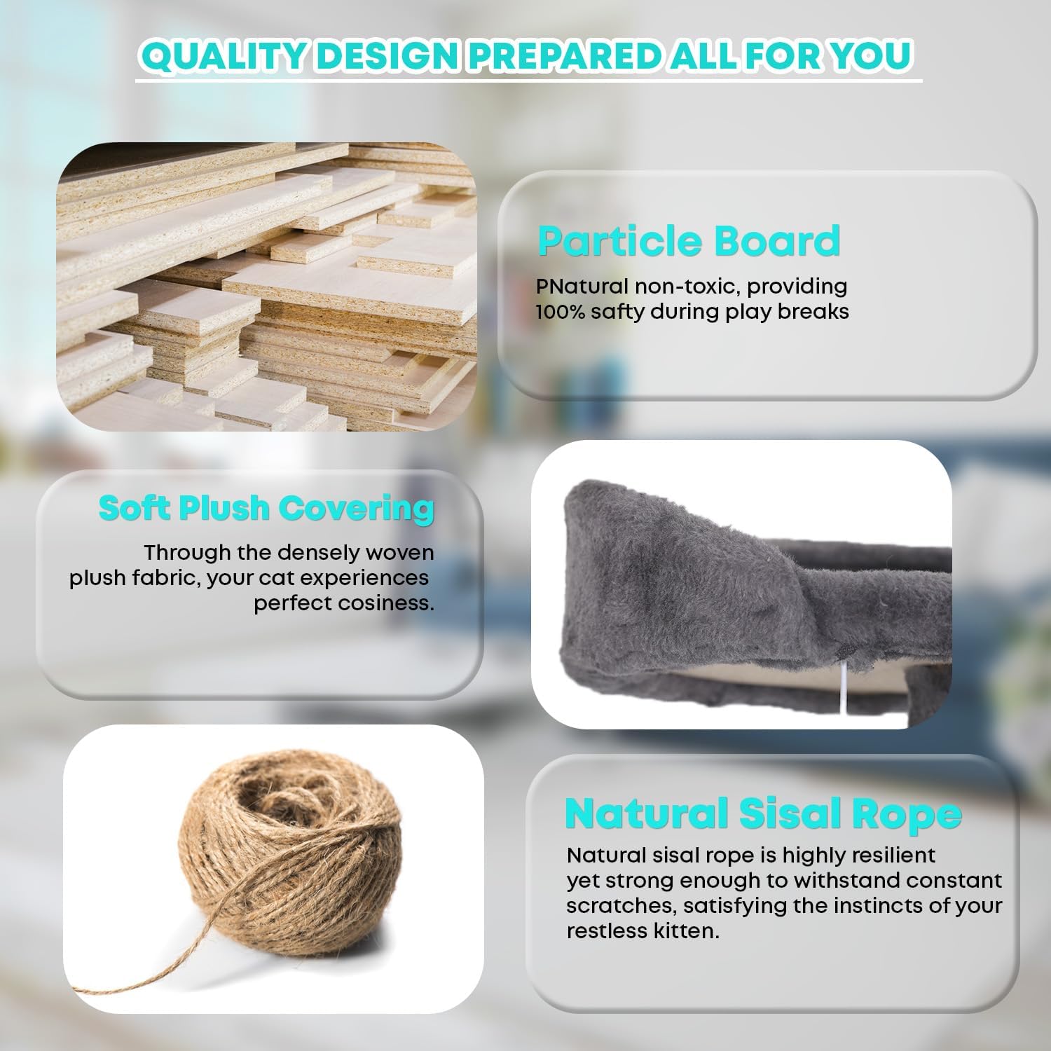 - 🐱 【Posts for Scratching Covered in Sisal 】These are scratching surfaces that are integrated into the framework. Cats love to bury their claws in sisal because it's a sturdy substance with a coarse texture. Our cat tree promotes healthy scratching habits and helps discourage cats from damaging furniture by offering dedicated spaces for them to scratch.