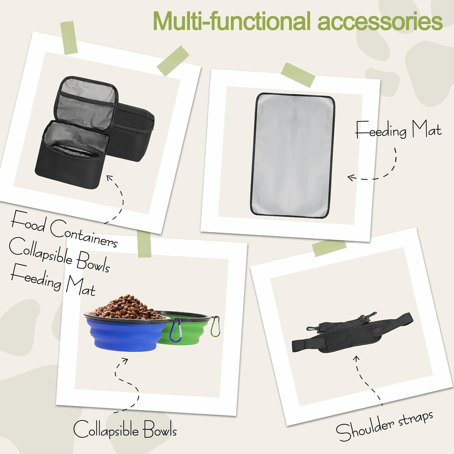 Dog Travel Bag,Weekend Pet Travel Bag Set for Dog and Cat,Airline Approved Tote Multi-Function Dog Bags for Traveling,Include 2 Collapsible Bowls,2 Food Storage Containers,1 Feeding Mat,Black