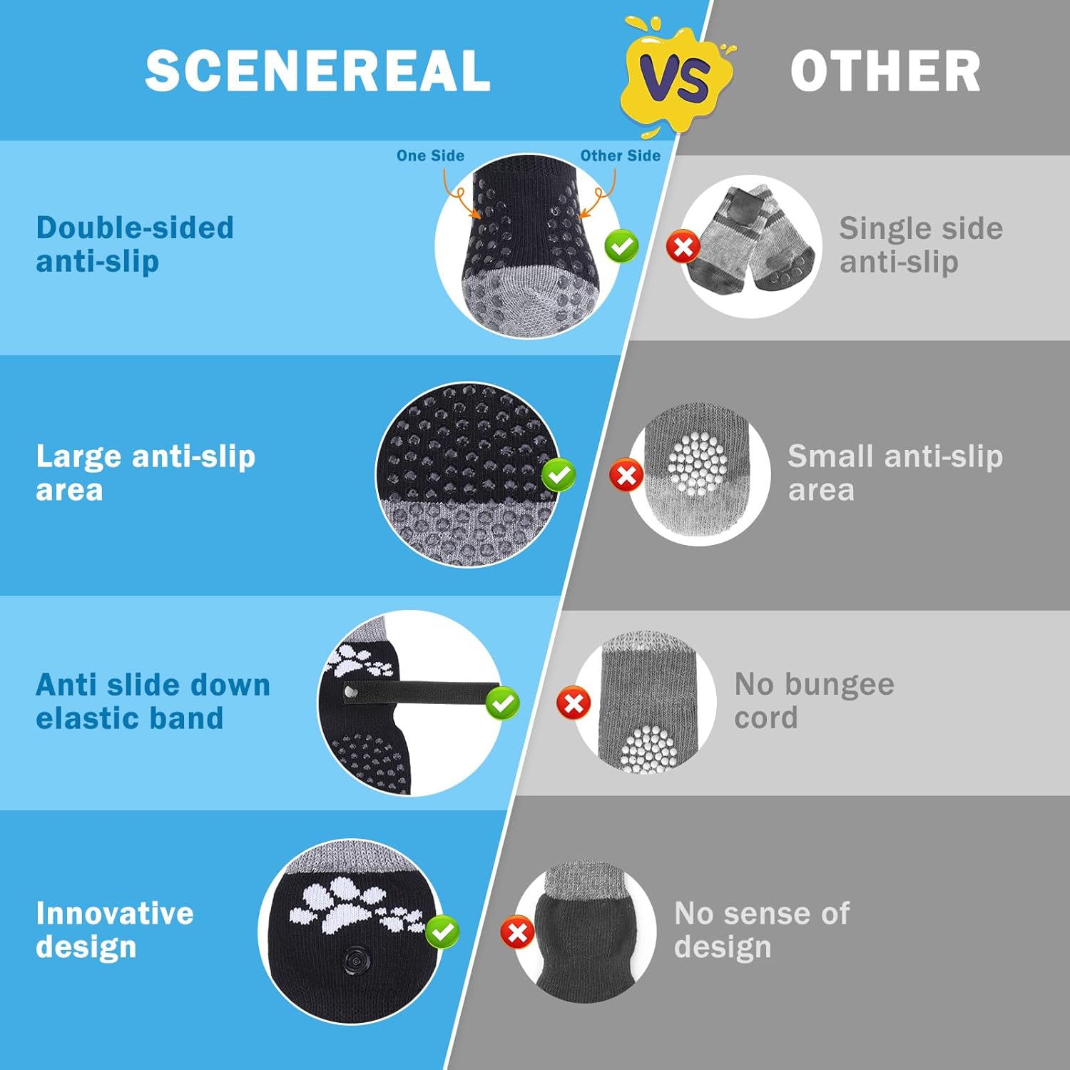 SCENEREAL Anti Slip Dog Sock to Prevent Licking Paws for Hardwood Floors, Boots & Paw Protector Shoes for Hot/Cold Pavement with Grippers, Double Sides Grips for Small Medium Large Senior Dogs, XS