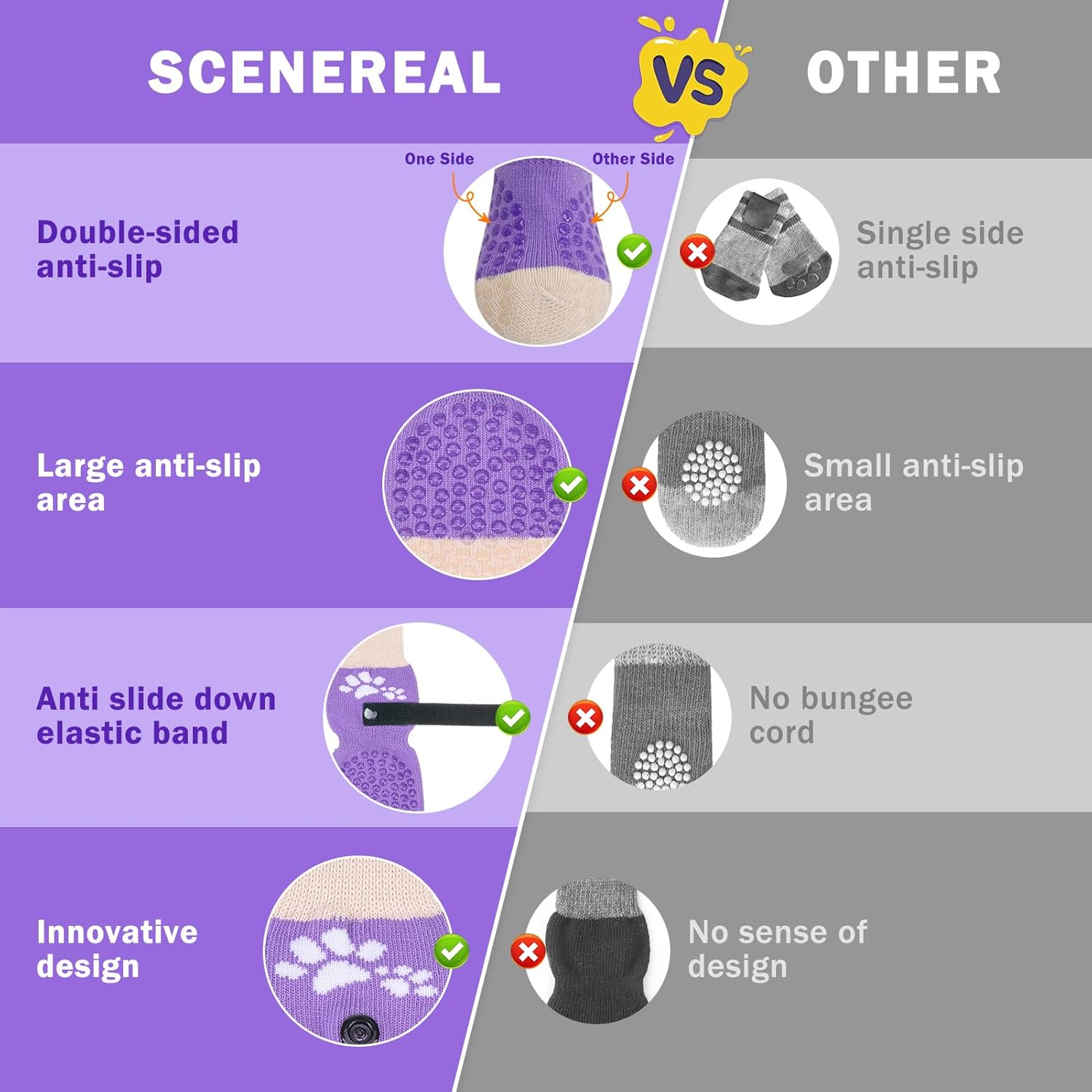 SCENEREAL Anti Slip Dog Sock to Prevent Licking Paws for Hardwood Floors, Boots & Paw Protector Shoes for Hot/Cold Pavement with Grippers, Double Sides Grips for Small Medium Large Senior Dogs, XS