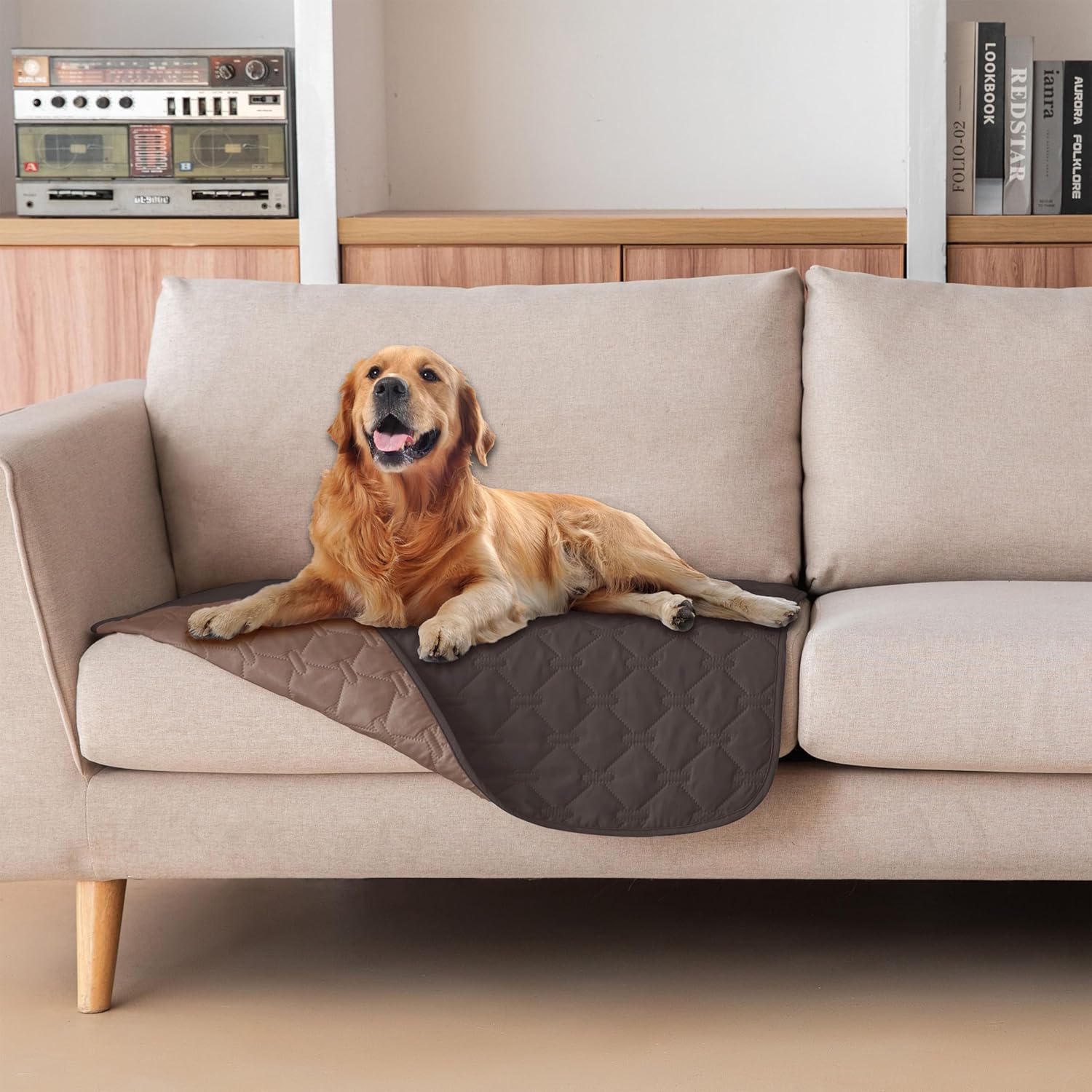 gogobunny 100% Double Sided Waterproof Dog Blanket Soft Pet Bed Cover Reversible Protect Furniture Couch Sofa Car for Puppy Dog Cat (Dark Coffee/Light Coffee, 30x30 Inch (Pack of 1))