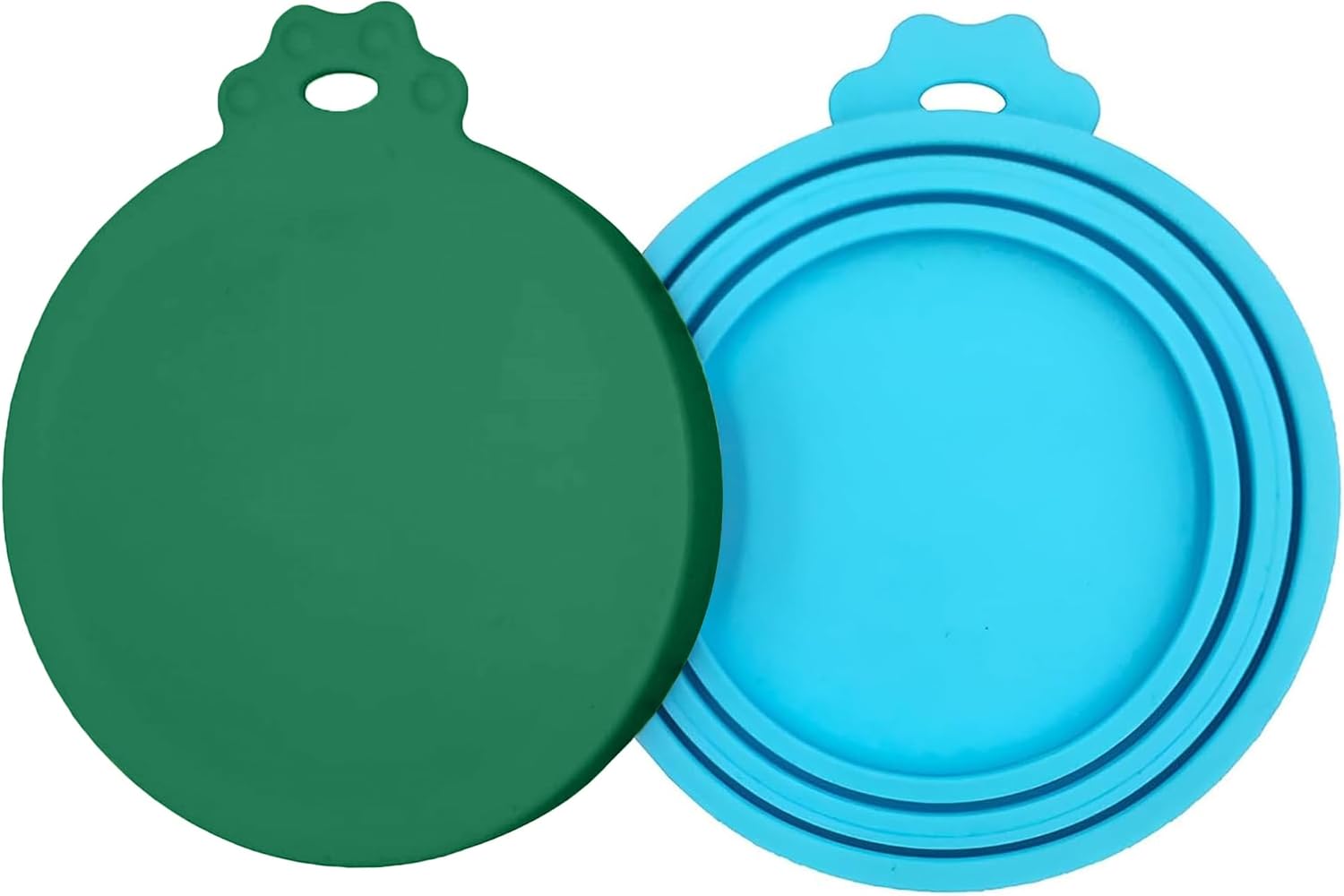 2 Pack Pet Food Cans Lids, Silicone Food Can Covers for Dog and Cat, BPA Free/Food Safe/Universal, One Fit Most Standard Size Food Can Top Blue/Dark Green, CWGTG01