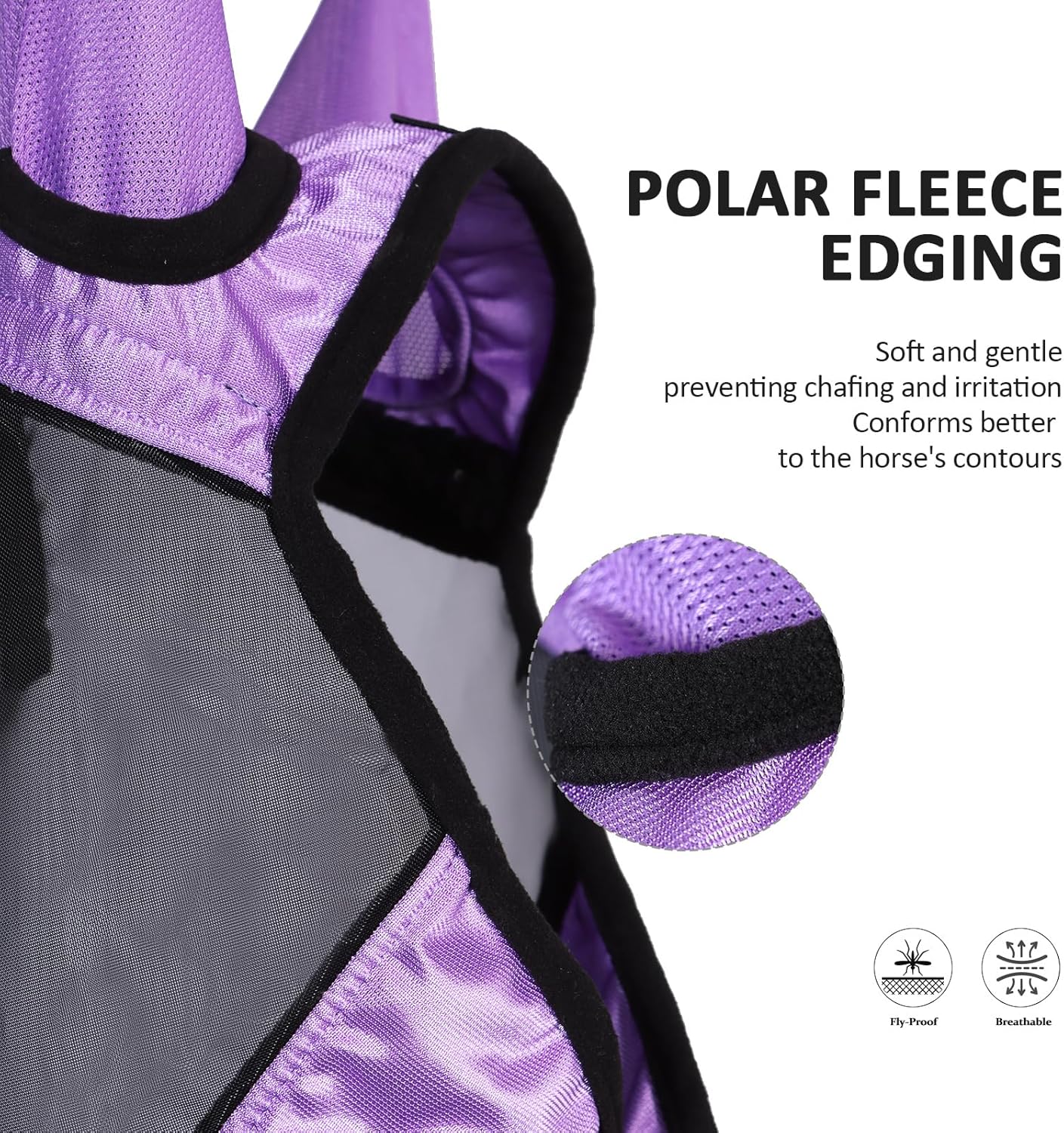 Harrison Howard Pro Luminous Horse Half Face Fly Mask Large Eye Space with Ears UV Protection for Horse Gentle Lavendar S
