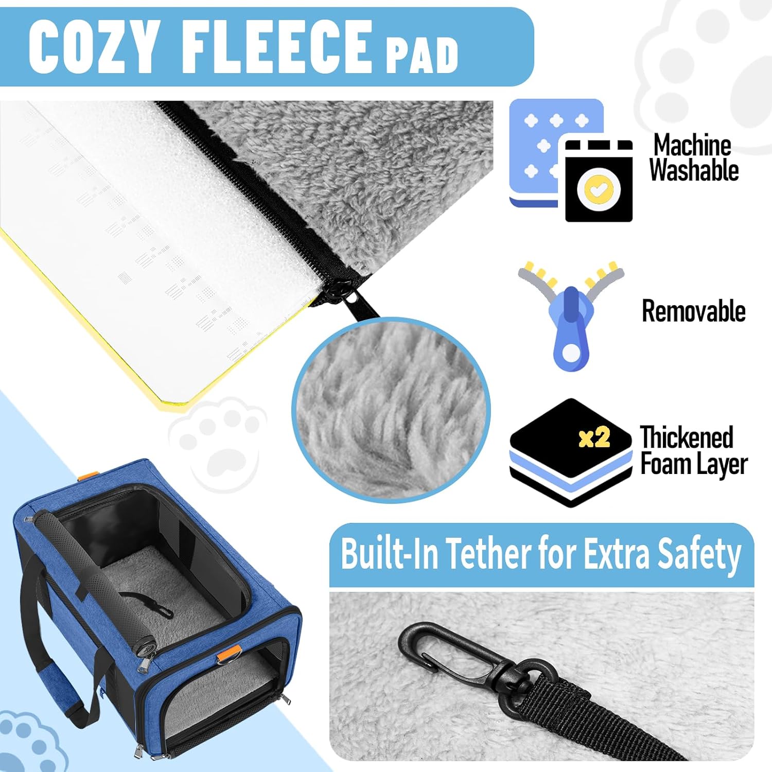 - Secured with auto-locking zippers, your pet can't escape easily by pushing against the zipper from the inside. An inner tether for extra safety. A reflective stripe on the side helps you feel at ease when you walking the dog at night