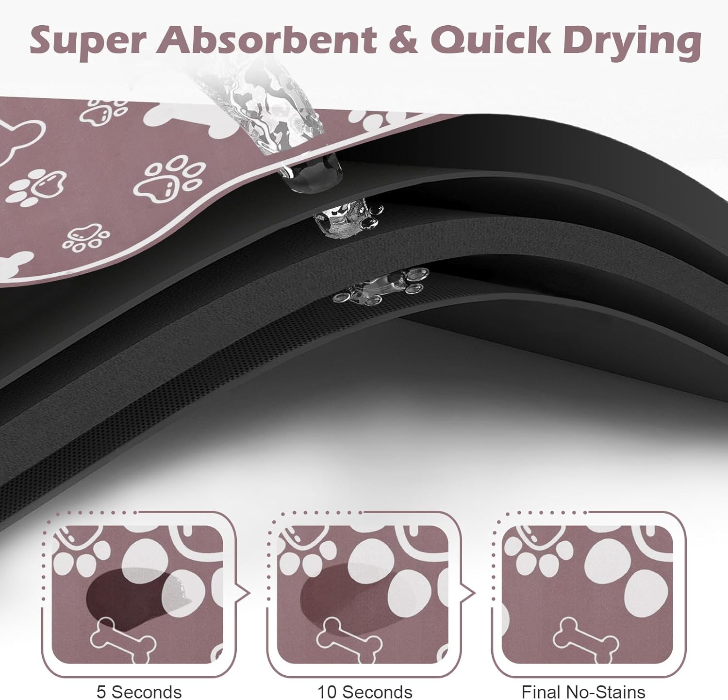 - Super Absorbent & No Stains: This pet feeding mat is extremely absorbent and dries quickly, absorbing any spilled water and milk,protecting your floors from stains and damage. Say goodbye to messy feeding areas and hello to a tidy, organized space that both you and your pets will appreciate.