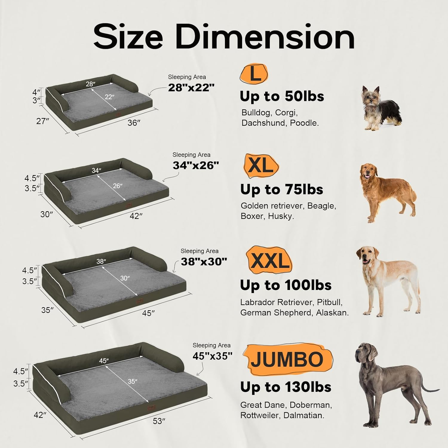 Large Dog Bed Orthopedic Washable - XXL Large Big Dogs - Waterproof with Removable Cover - Memory Foam - Beds Bolster Pet - Dogs Couch Sofa Bed - Dark Green Dog Beds