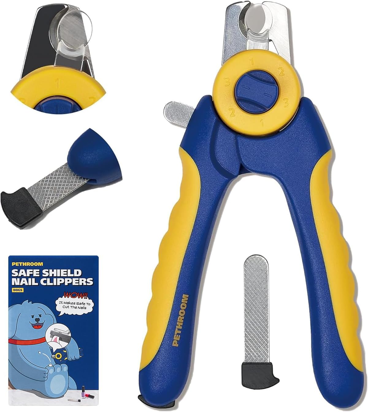 PETHROOM] Professional Dog Nail Clipper with Transparent Guard & Nail File | Adjustable Cutting Length (1-3mm) Sturdy, Durable Stainless Steel Blade | Nail Trimmer for Pets Avoid Overcutting