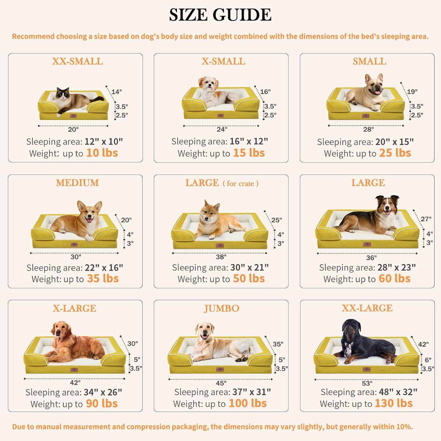 Comfort Expression Waterproof Dog Beds Large Sized Dogs, Large Dog Beds Orthopedic Foam, Comfy Pet Bed Sofa with Washable Removable Cover & Non-Slip Bottom(Spicy Mustard)