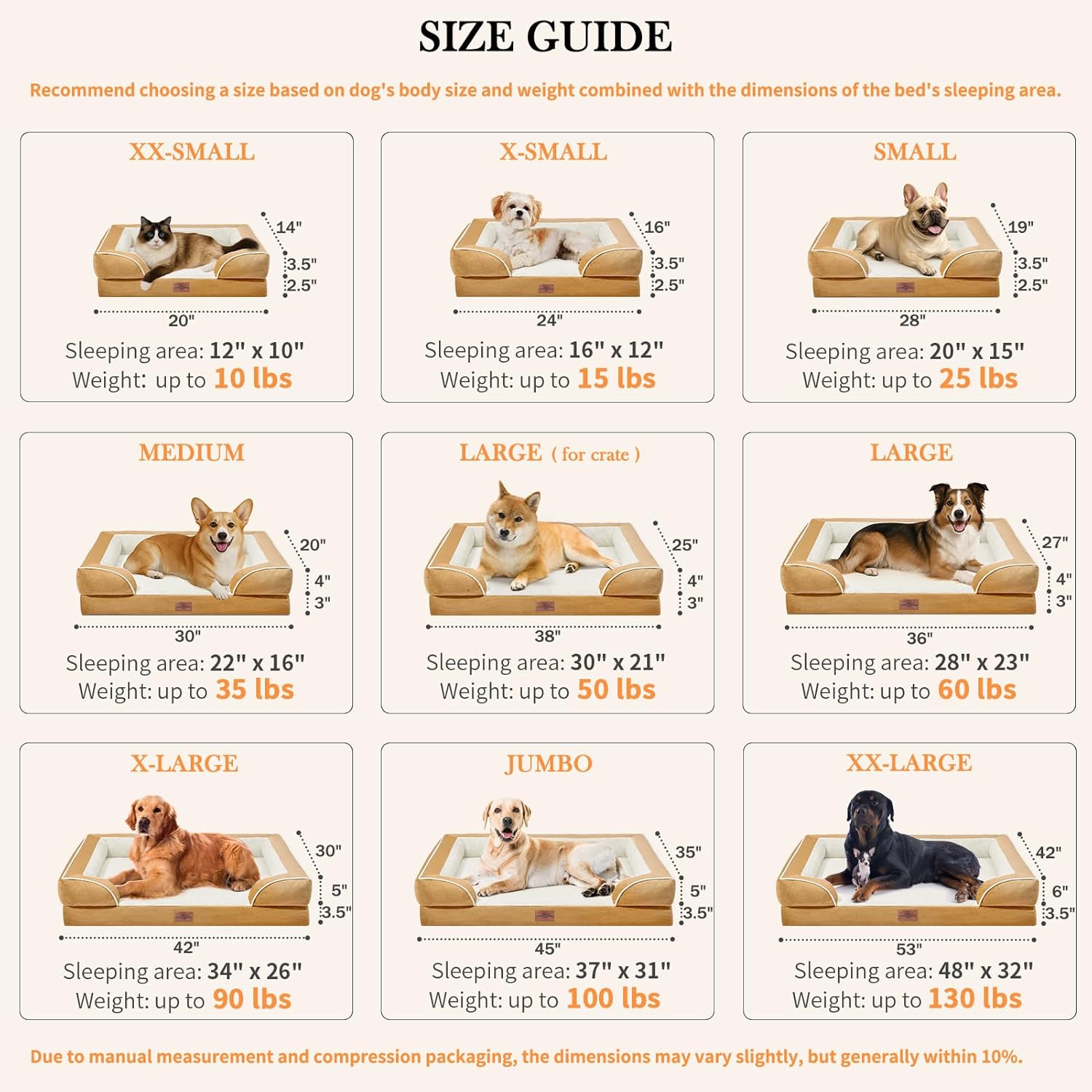Comfort Expression Extra Large Dog Beds, XL Dog Beds Waterproof, Orthopedic Washable Dogs Beds with Bolster, Pet Sofa Couch with Removable Cover & Non-Slip Bottom(X-Large,Khaki)