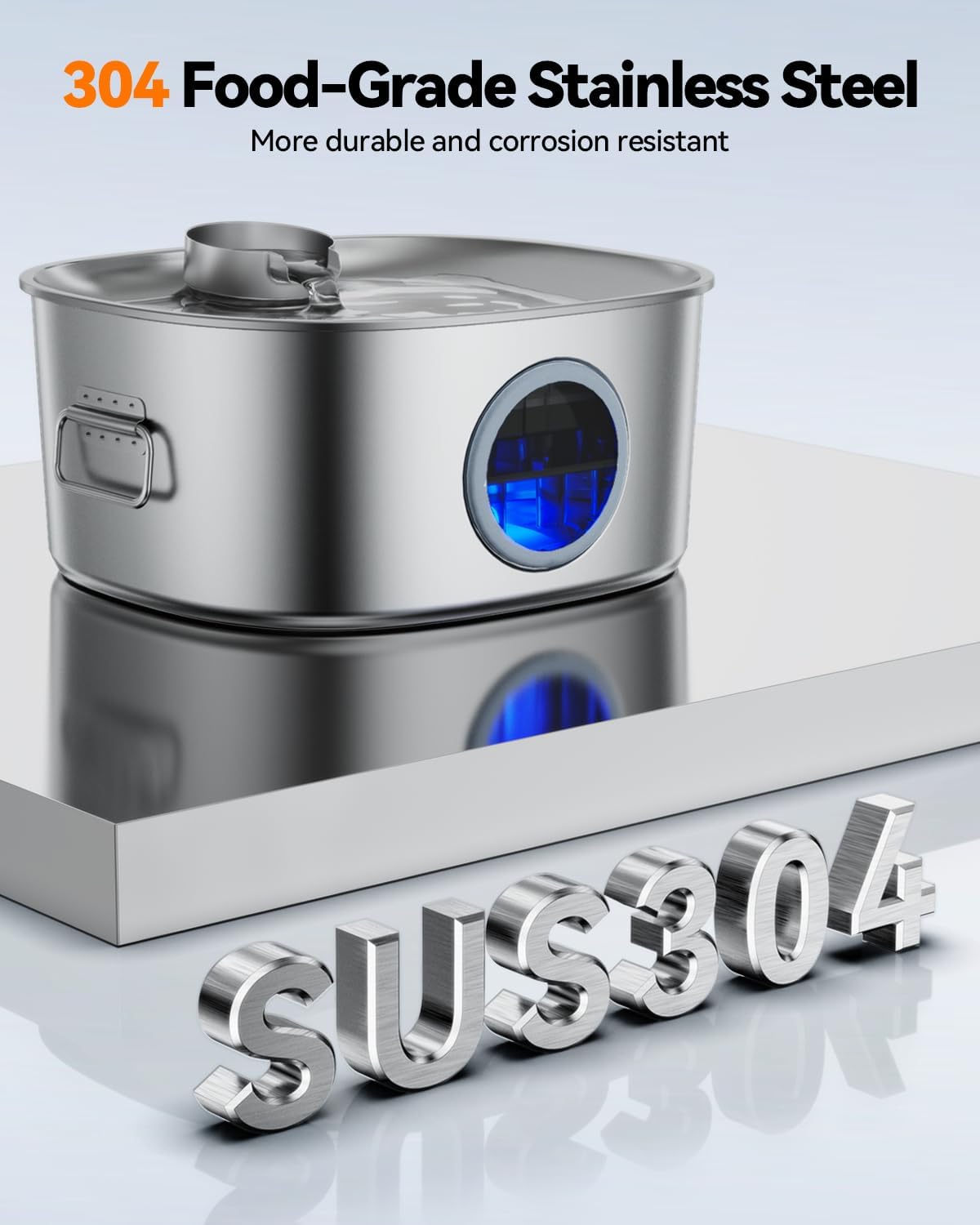 Dog Water Fountain Stainless Steel, 11L/2.8Gal Large Pet Water Fountain for Large Dogs Inside, Dog Fountain Water Bowl Automatic Dispenser with Visible Window & LED, Ultra Quiet for Dogs and Multi-Pet