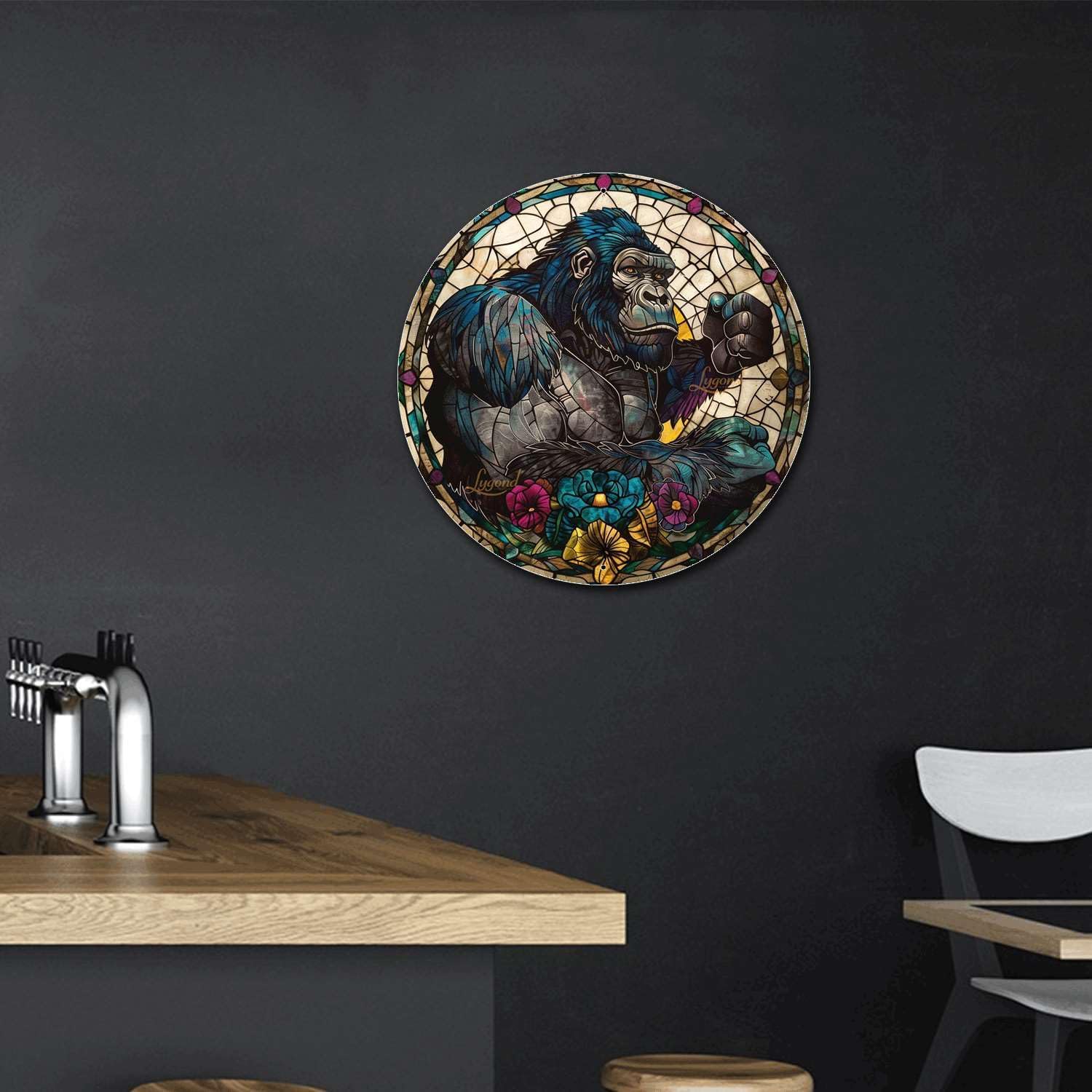 Lygond Metal Gorilla Bar Sign - Circular Stained Glass, 88 Inches