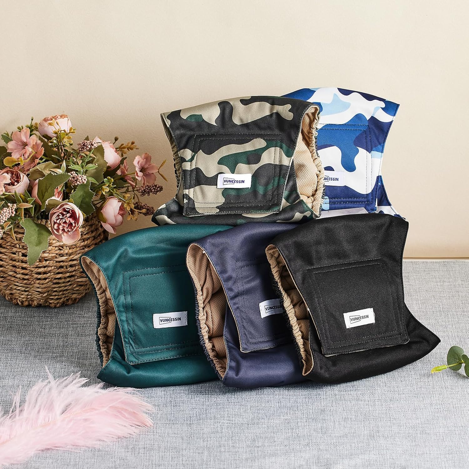 Reusable Dog Diapers Male, Premium Washable Belly Bands for Dogs, Pack of 5, High Absorbing Medium Male Dog Wraps for Doggie & Puppy in Incontinence or Excitable Urination and Training(M)