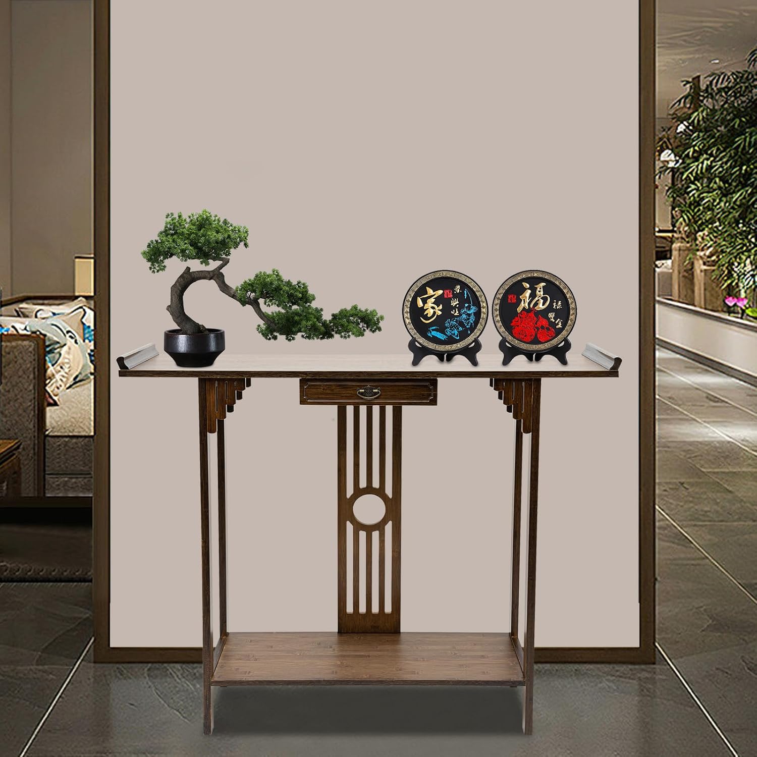 - 【Spacious Storage Space】This narrow console table has a top platform (40.1 * 12.2 inches) and a bottom partition (26 * 11.4 inches). The long desktop and large bamboo board provide more storage space without taking up too much space for various display options. This dining table is compact and can fit well in narrow corridors, restaurants, or spaces behind sofas. The bottom mesh shelf provides additional storage space for linen baskets, boxes, shoes, and more.