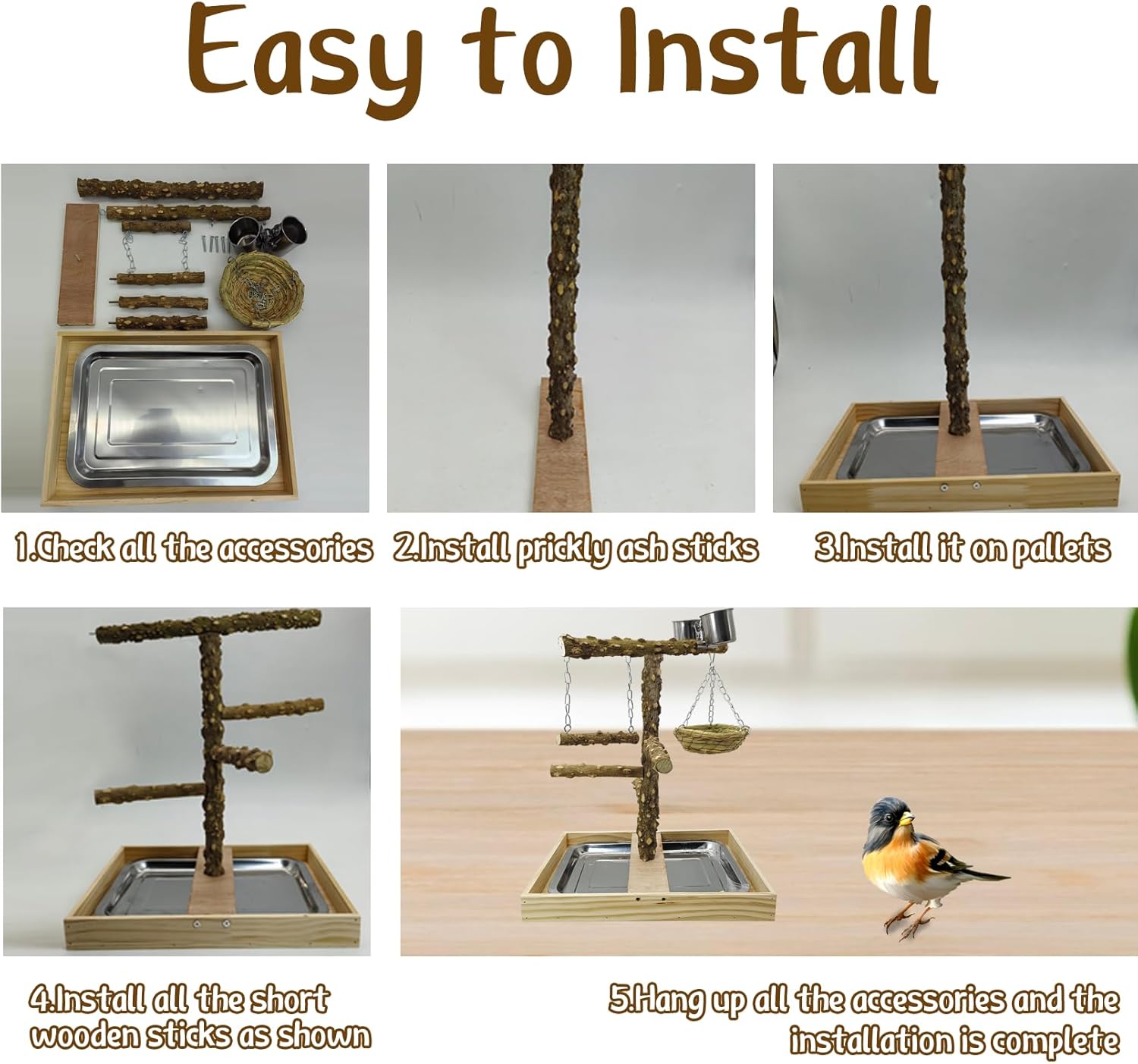 - EASY TO INSTALL: This product need to be assembled by yourself, you will receive the parts, please assemble by yourself, it is very simple. Just install the perch and screw it, during the entire installation process, you don't need additional equipment to install. Also it is convenient for you to disassemble and clean