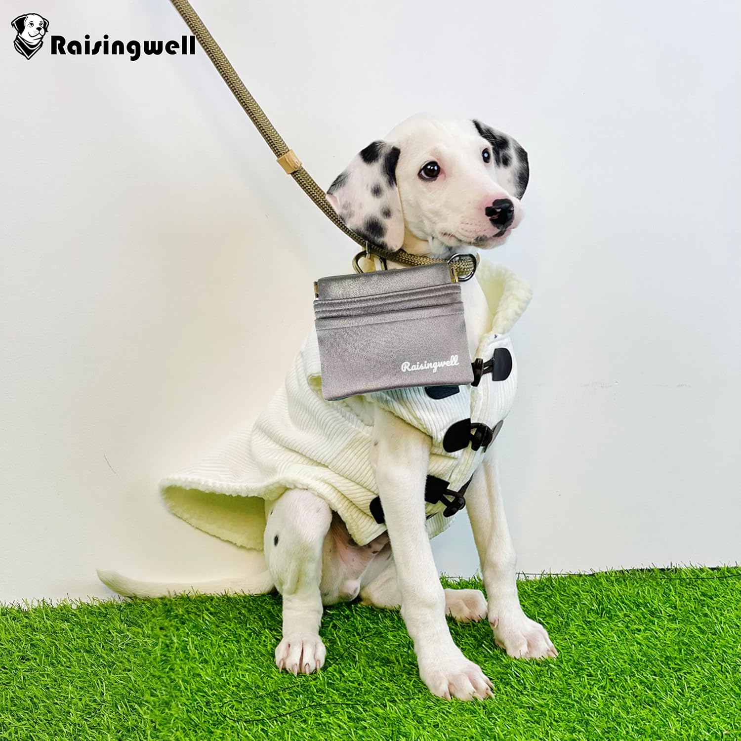 - Durable Tech Material: Raisingwell's dog treat training pouch is crafted from durable, washable, non-toxic vegan fabric, utilizing nano photonic crystal technology. In particular, the waterproof lining addresses the issue of difficult cleaning inside the training pouch.