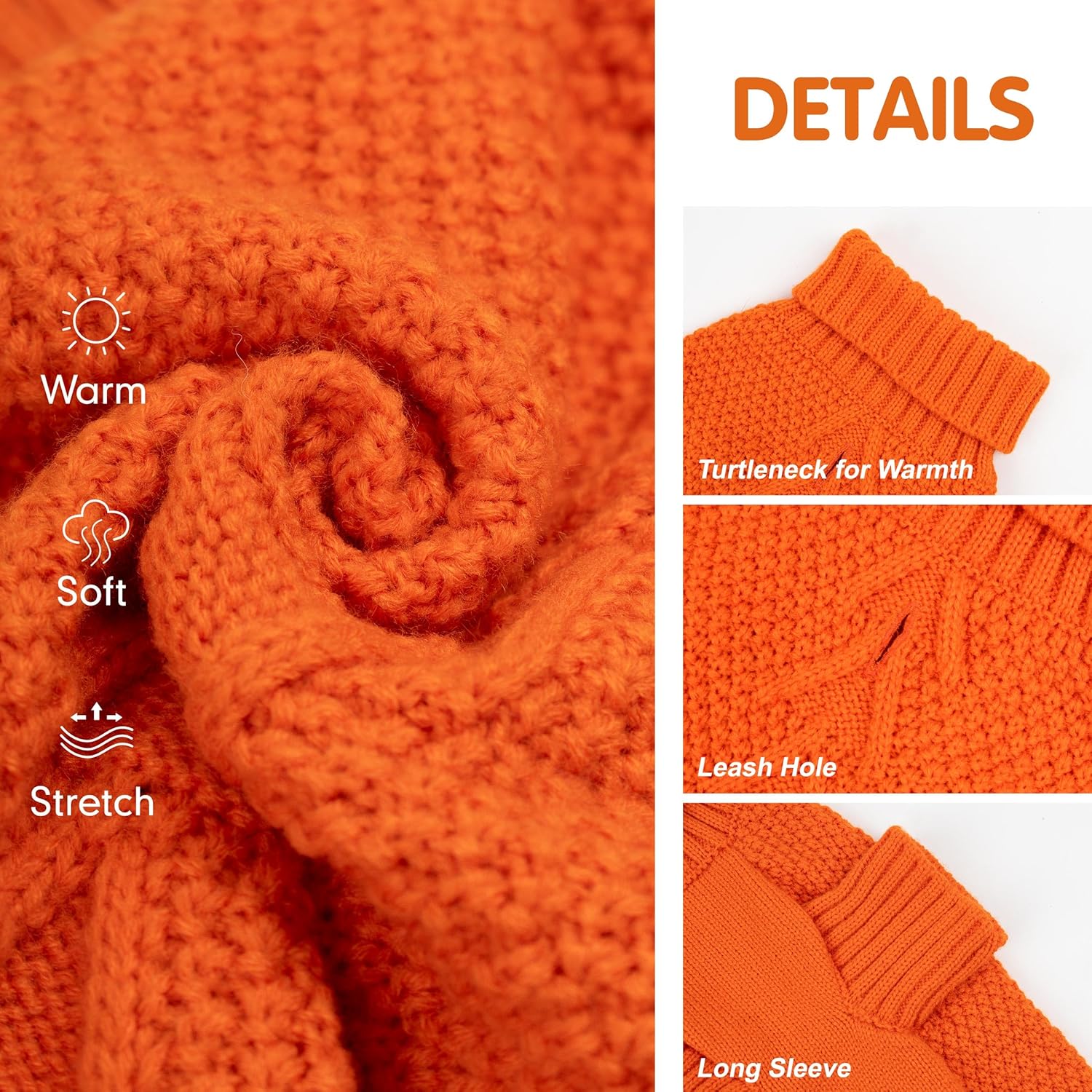 cyeollo Dog Sweater Pullover Turtleneck for Dogs, Classic Knitwear Fall Winter Cold Weather Dog Clothes Warm Pet Apparel Small Medium Large Pet Sweaters, Orange XL