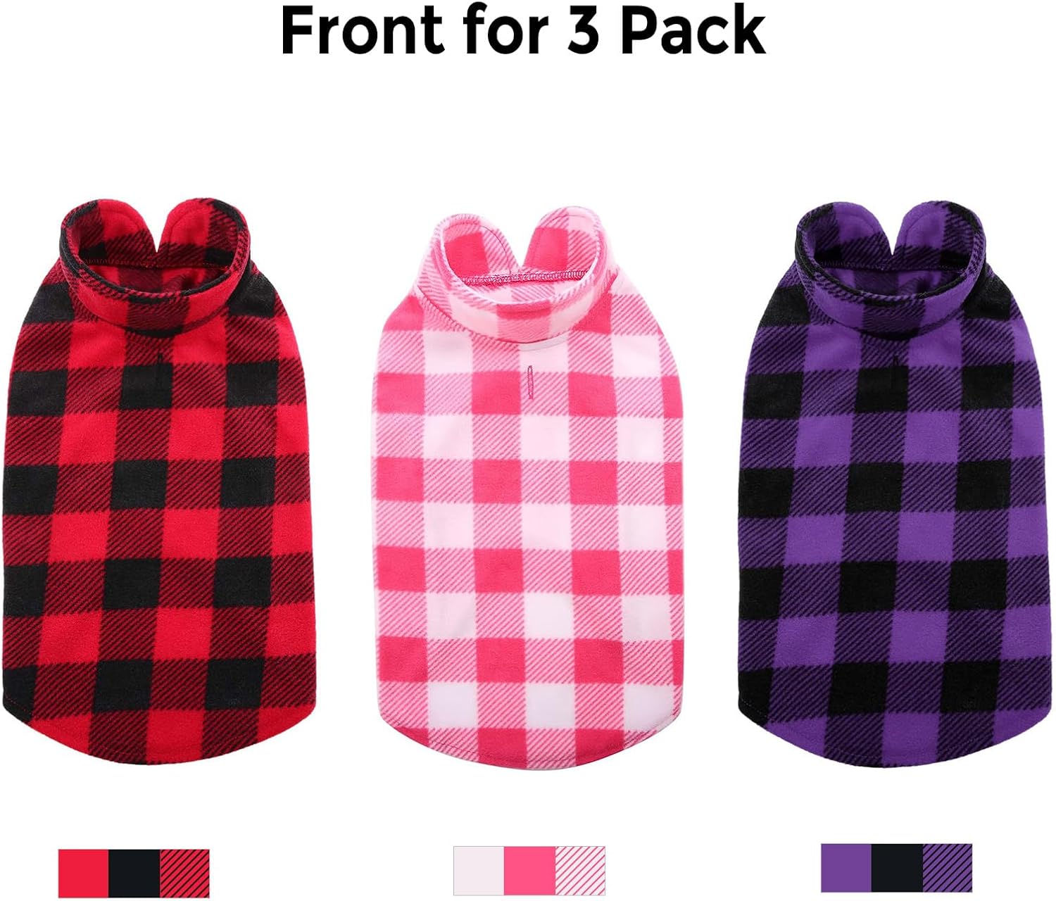 ASENKU PLAID Dog Fleece Vest & Pajamas - 3 Pack, Warm Winter Dog Coat, Jacket Pet Clothes for Small & Medium Dogs