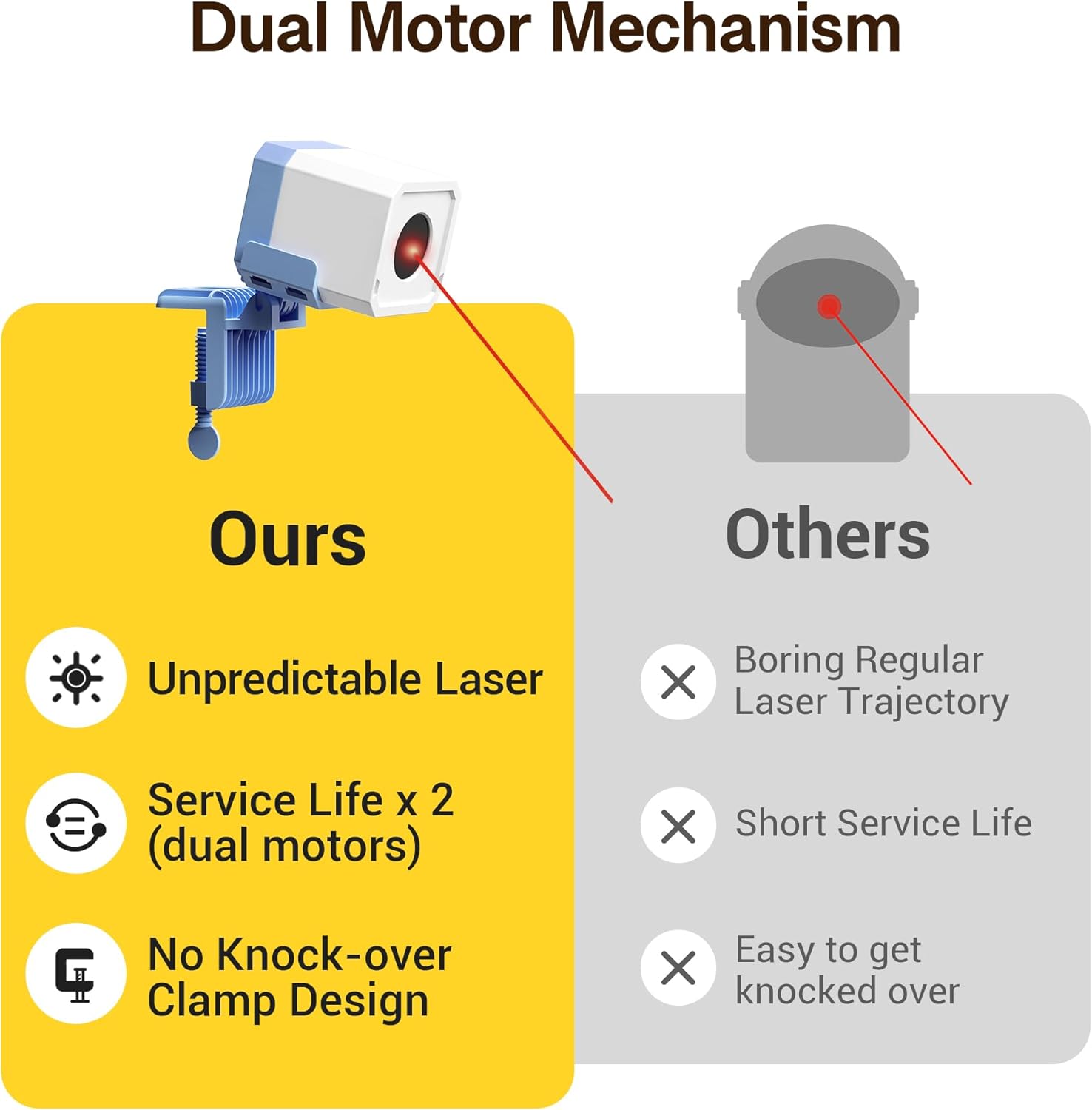 - True Randomness: Experience the game-changer in cat toys with truly random laser movements. No more predictable patterns; watch your cat or kitten get fully engaged in the hunt, thanks to the cutting-edge dual motor mechanism.
