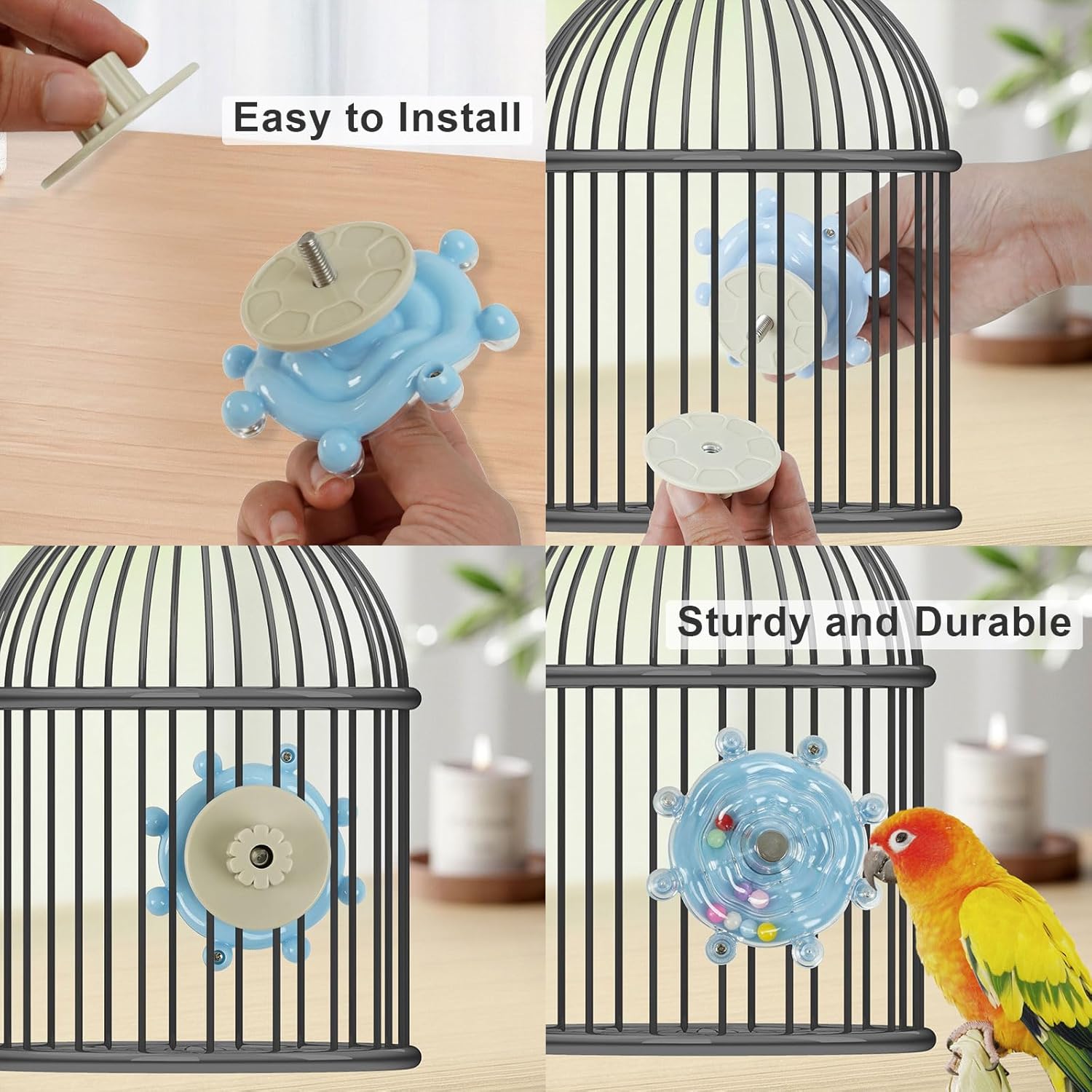 - Good Partner for Birds: The bird cage accessories can rotate, and the built-in ball will make a rustling sound during the rotation, which will attract birds to interact with parrot toys for medium birds. When you go out or work, these bird beak grinding stone toys will accompany the bird to entertain itself, relieve anxiety, and keep it physically and mentally healthy