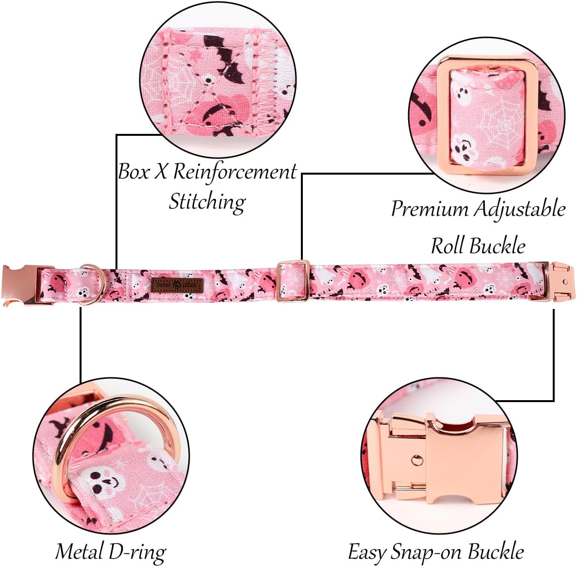 Lionet Paws Halloween Dog Collar, Cute Fall Pink Dog Collar for Large Dogs, Adjustable Cotton Pumpkin Ghost Pet Collars for Large Dogs