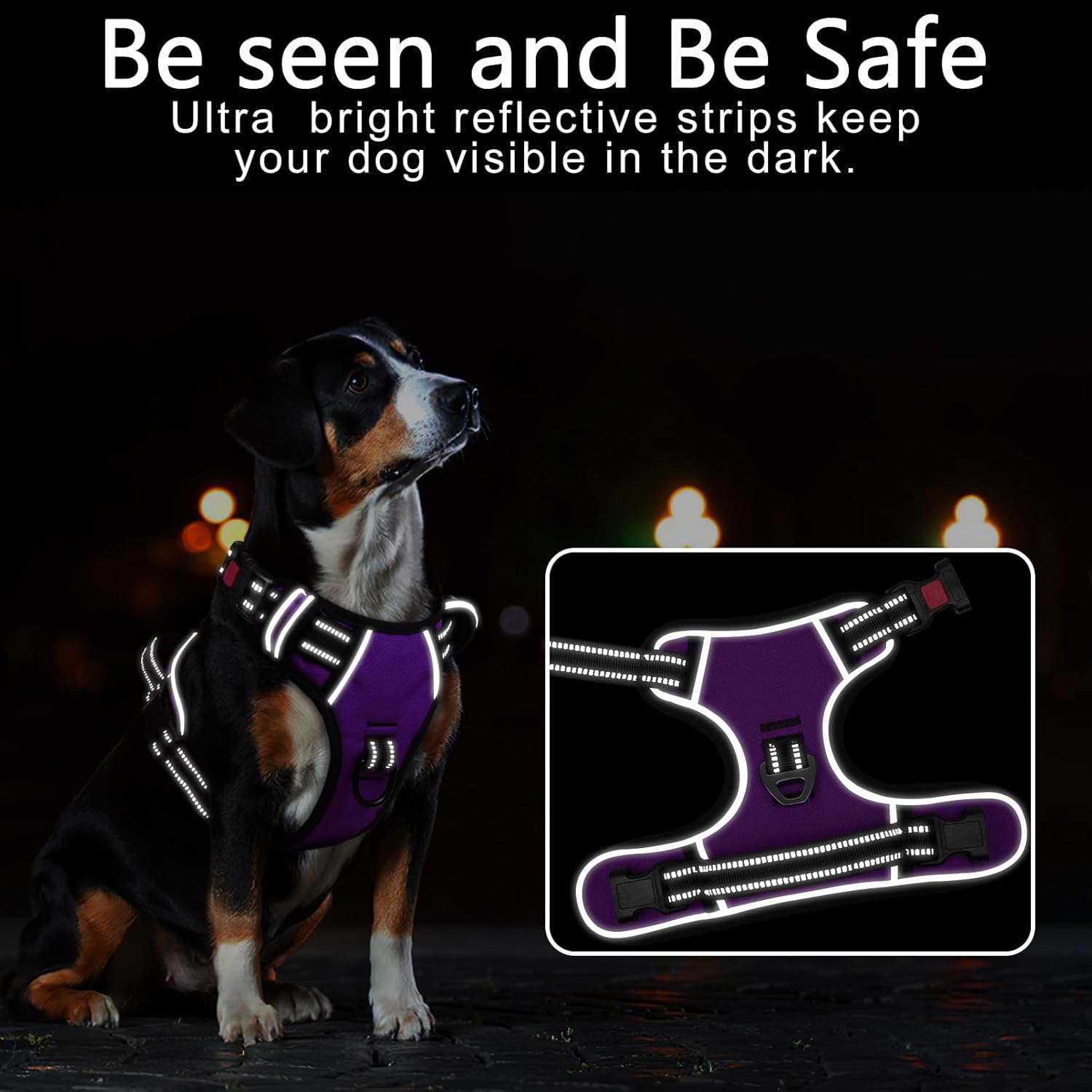 - 【MUCH SAFER & MORE COMFORTABLE】 Breathable mesh lining with soft sponge padding plate of puppy harness prevents injuries, giving extra comfort and protection with enhanced 1600D oxford fabric. The reflective material will be really nice when it gets dark. Also, your dog will be saw easily. This reflective material can make drivers have long time to react, which ensure your dog’s safety!