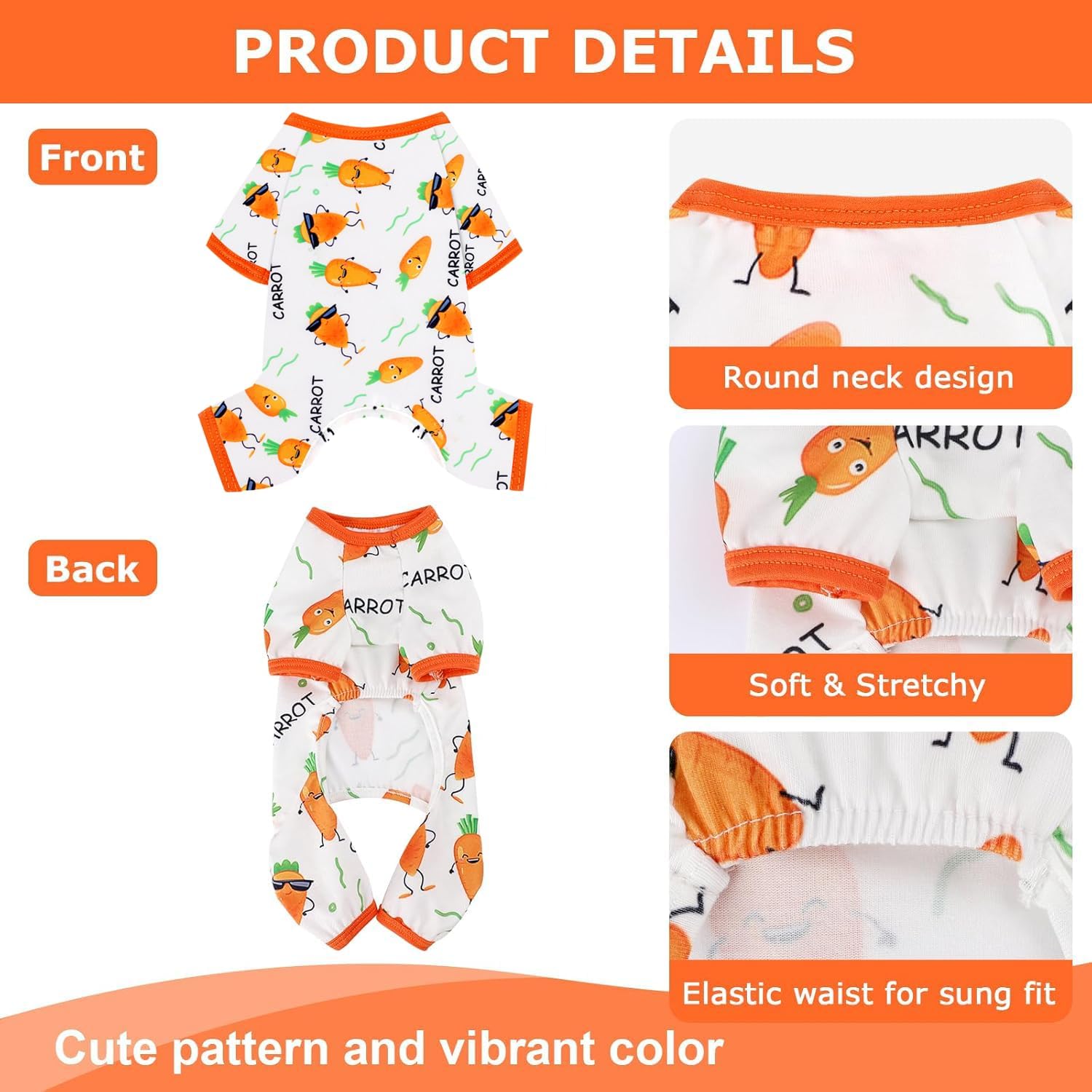 - 【CUTE DOG ONESIES FOR SMALL MEDIUM DOGS】Pajama has adorable CARROT graphics all over. Vibrant color and cute pattern, making it a cute and Number 1 in your pet’s wardrobe. High-quality graphic pjs printed with advanced equipment to ensure lasting durability. Great for cozying up around the house or for themed photo ops. The PinkBow pet clothes are the go-to PJs for cats and dogs alike.