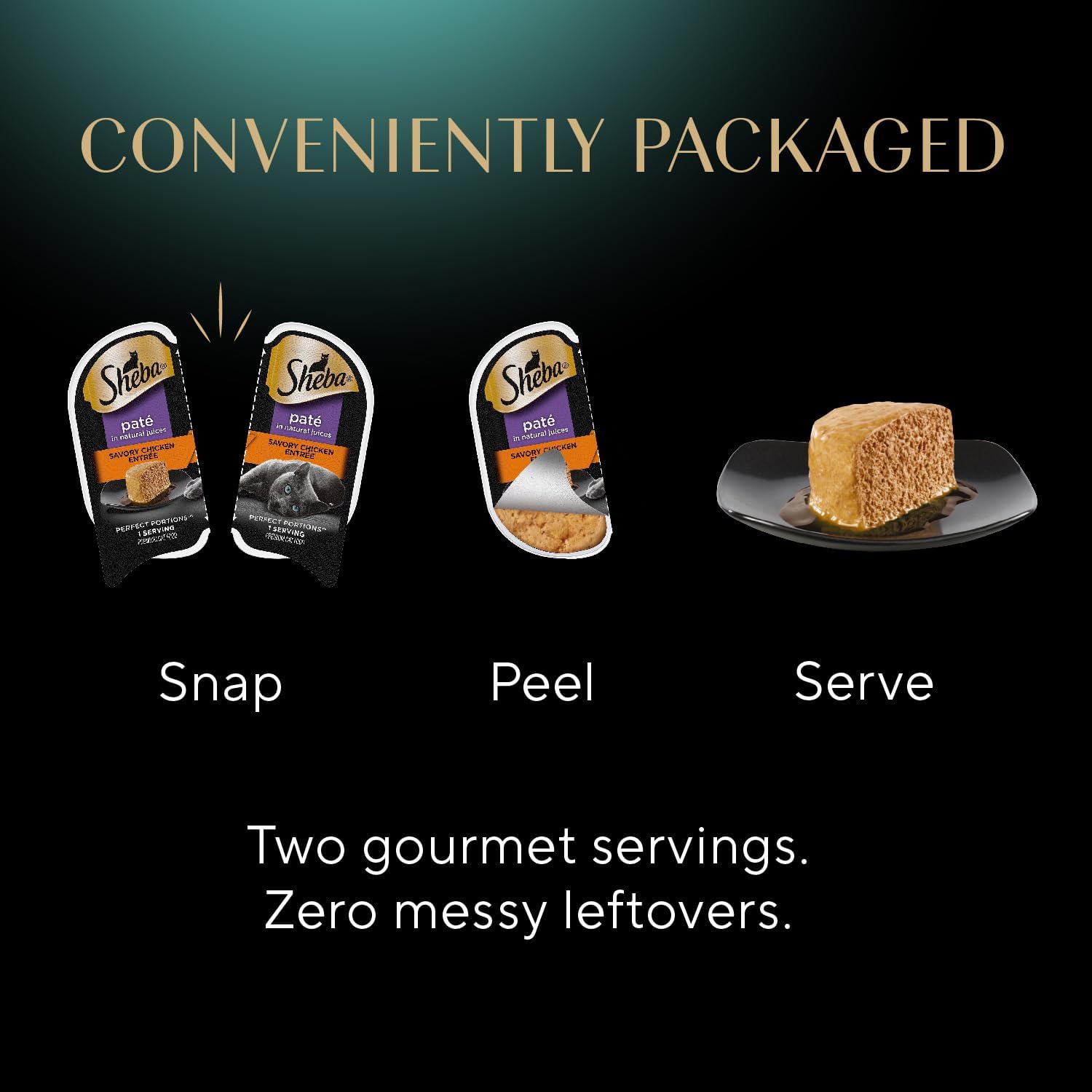 - Easy-to-Serve: Just snap, peel, and serve Sheba Perfect Portions Wet Cat Food