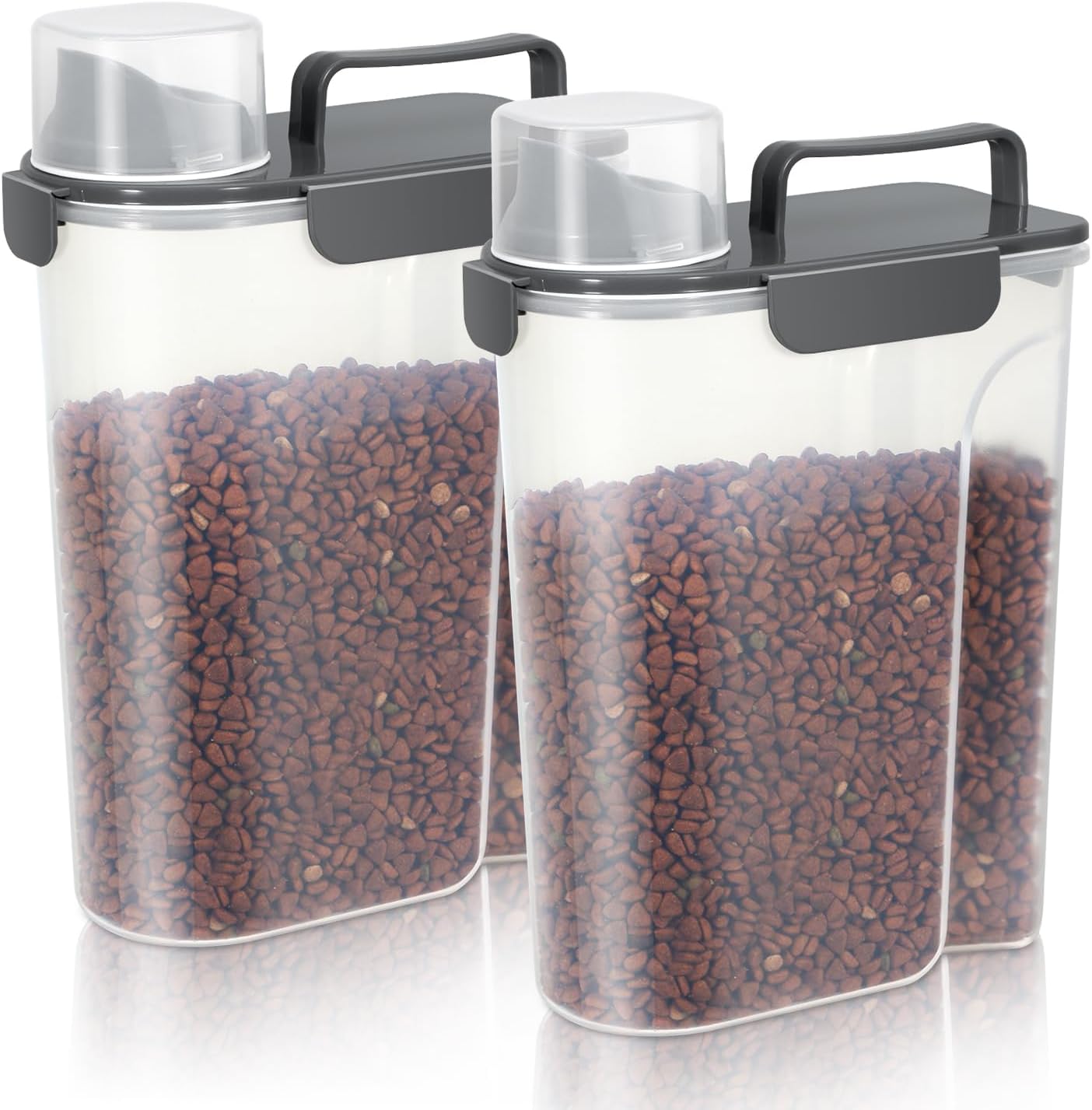 5-7Lbs Cat Dog Storage Container, Portable Pet Food Containers with Upgraded Large Spout and Cup, Small Animal Kibble Dispenser for Bird Seed, Oatmeal, Rice, Flour (2, Dark Gray, 5L)