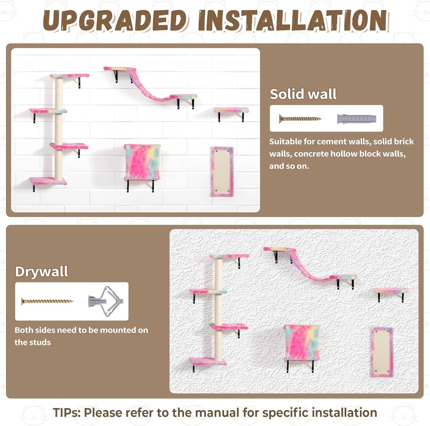 - 【Easy Installation】: Our beige cat wall shelves can blend well into most styles of home decor. All parts are labeled and pre-drilled, you can easily fix this set to the wall with the detailed manual. Perfect as a gift for cat lovers.