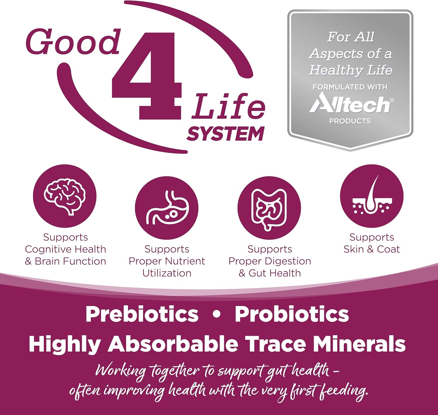 - NutriSource grain inclusive formulas include prebiotics and probiotics to support gut health and aid in absorption of key nutrients