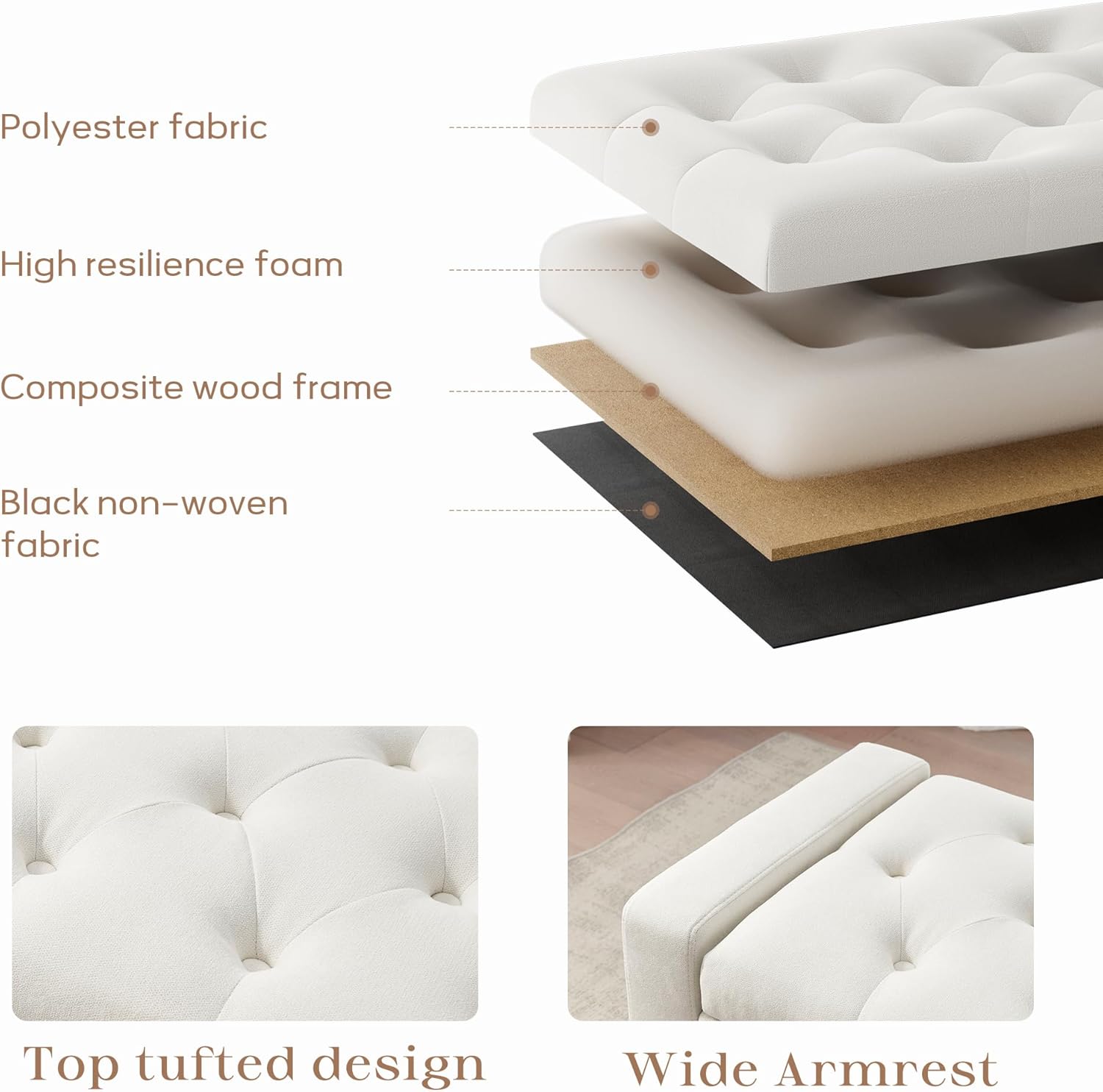 - BETTER COMFORT: The seat cushion of the bench for bedroom is filled with high-resilience, high-density foam that resists sagging and retains its shape over time. The skin-friendly fabric ensures a comfortable seating experience. The excellent craftsmanship and durable fabric give it a stylish and elegant look, offering lasting comfort