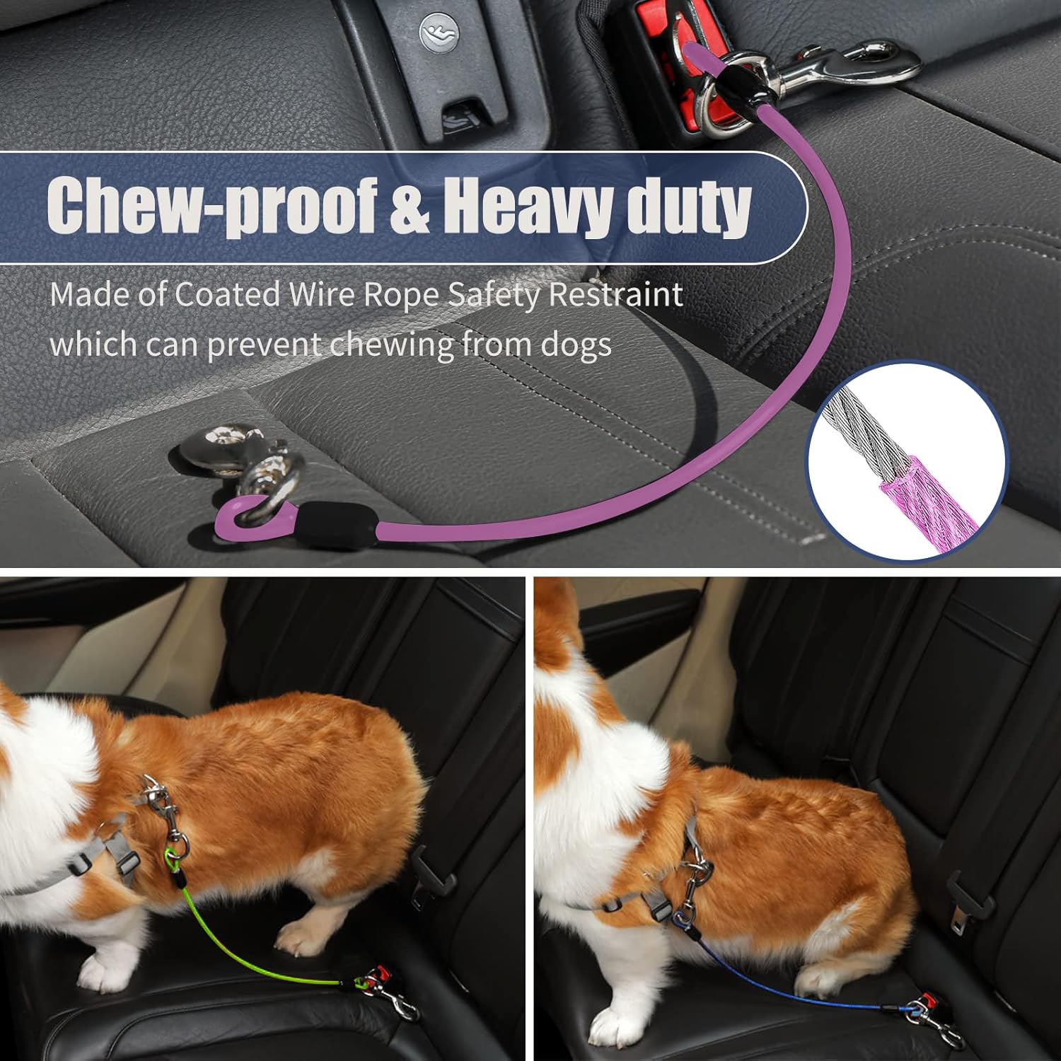 Dog Seat Belt Harness for Car,Dog Seatbelt of Coated Wire Leash Safety Restraint,No Chew Tether Cable Vehicle,Double Clips & Latch(Purple, 32 inch/80 CM)