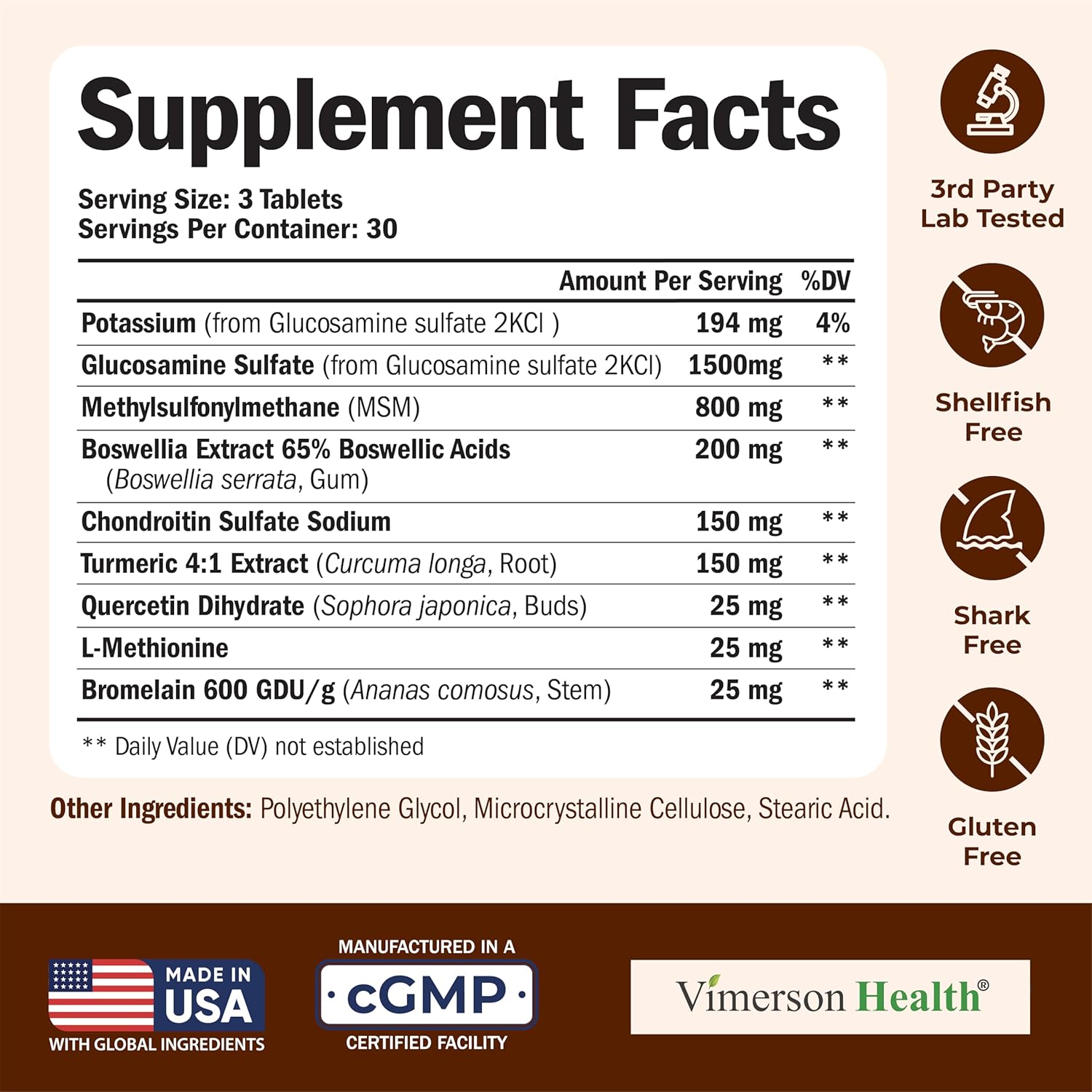 - Special Ingredients : Chondroitin, Glucosamine, Gluten Free