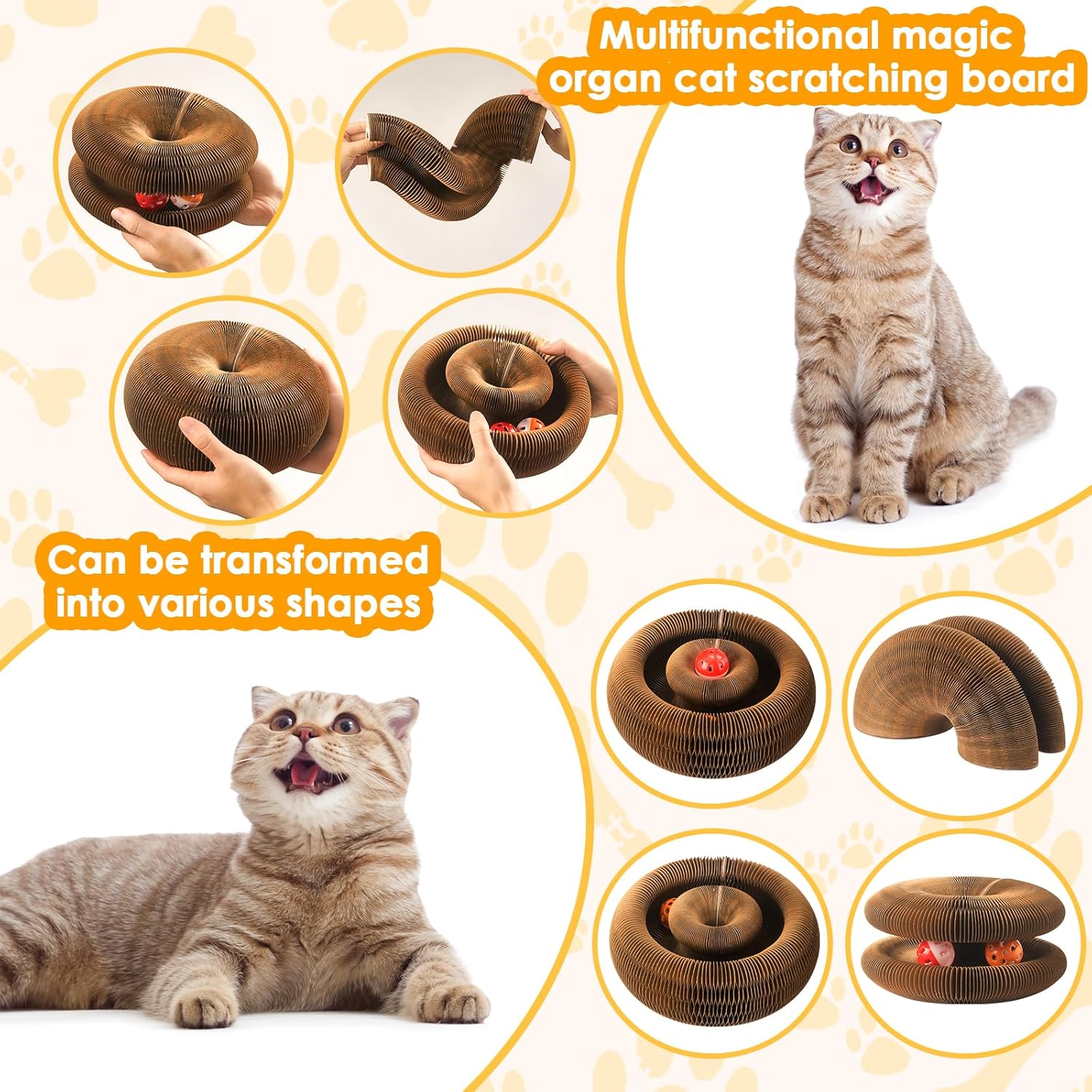 2 Pack Magic Organ Cat Toy Foldable Magic Organ Cat Scratching Board Reversible Infinity Style Magic Organ Cat Toy with 4 PCS Ball Cat Toys Interactive Indoor Cat Toys