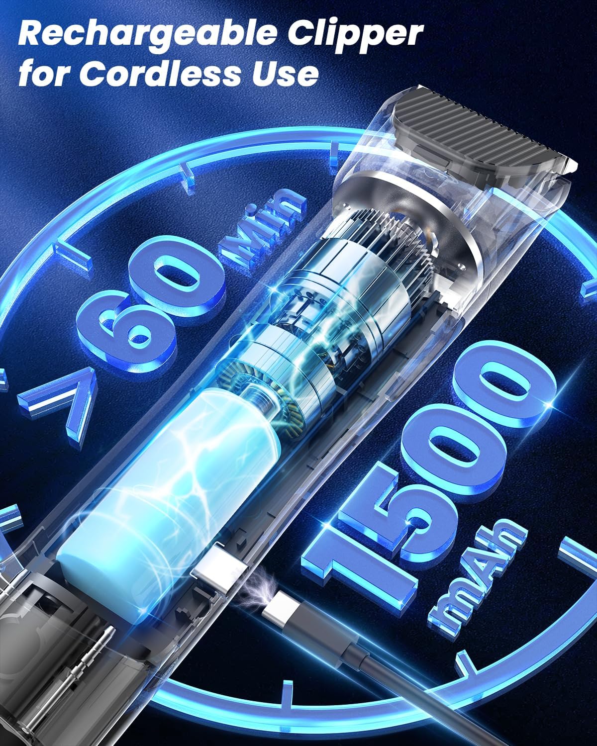 - Portable Wireless Dog Clipper. Buenkee innovative dog grooming clipper features a detachable design with a built-in 1500mAh rechargeable battery, enabling independent use. With over 60 minutes of continuous use on a single charge, it's sufficient for grooming large dog breeds or multiple pets in a busy household.
