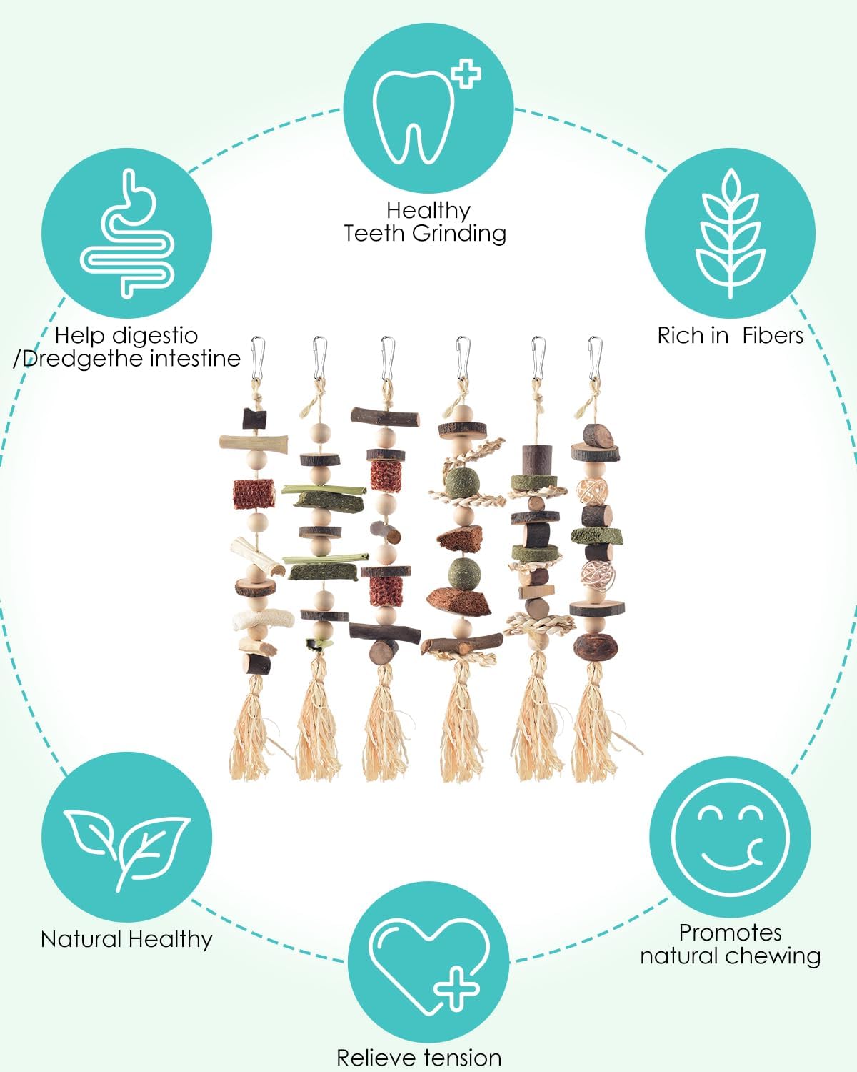 - Multiple Benefits: These chew toys for chinchilla easily attract your pets to play and exercise, satisfying their natural needs and enriching their daily activities. They allow rabbits and other small animals to release their energy through chewing and playing, preventing them from chewing on cages and furniture, and keeping them physically and mentally healthy