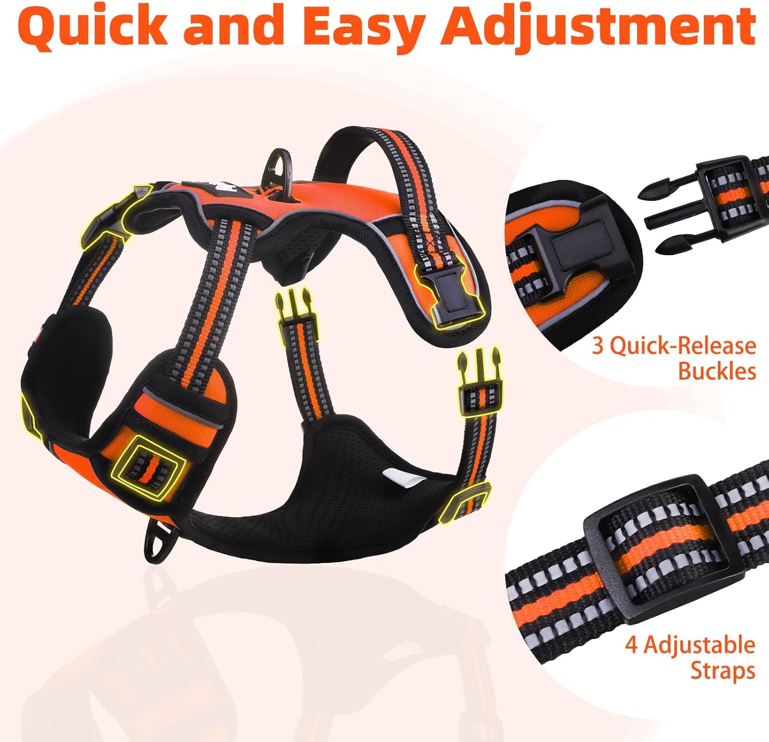 PUPTECK No Pull Dog Harness for Large, Adjustable Reflective Dog Harness with Handle Easy Control, Comfortable Soft Padded Pet Vest Harness for Large Dogs, Orange L