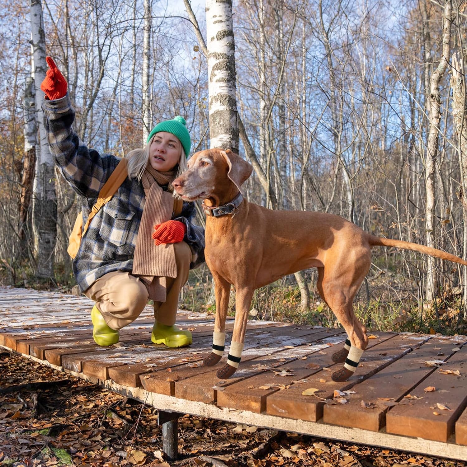 - PREMIUM QUALITY FABRIC: The non slip dog socks made from stretchy and comfortable breathable knitted fabric, soft and lightweight, easier for your dog to wear; the bottom is designed with an extra thick grip for durability, which effectively protects your furry pet's paws from hot and cold sidewalks and rough outdoor surfaces