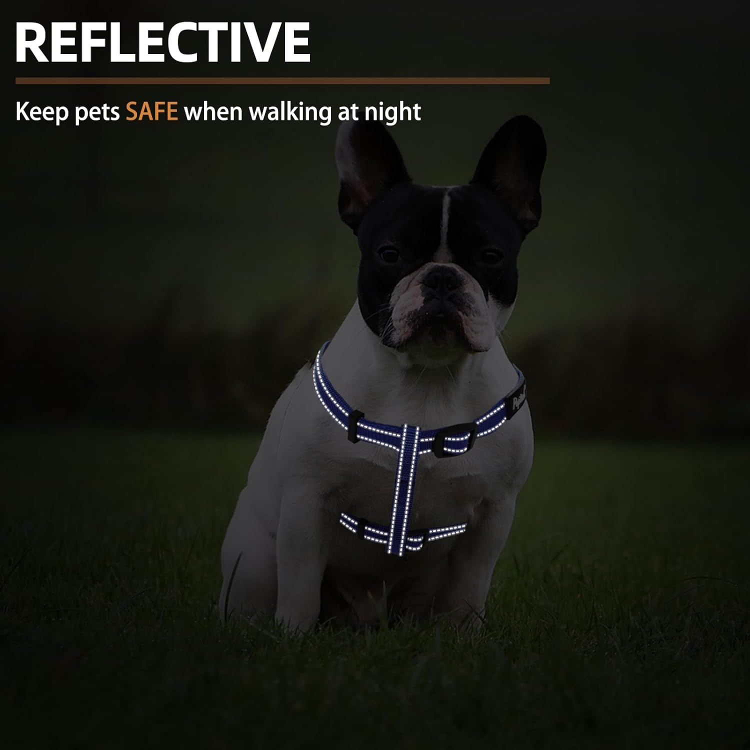 PUPTECK No Pull Dog Harness Soft Adjustable Basic Nylon Step in Puppy Vest Outdoor Walking with ID Tag, Reflecive Navy Blue, S