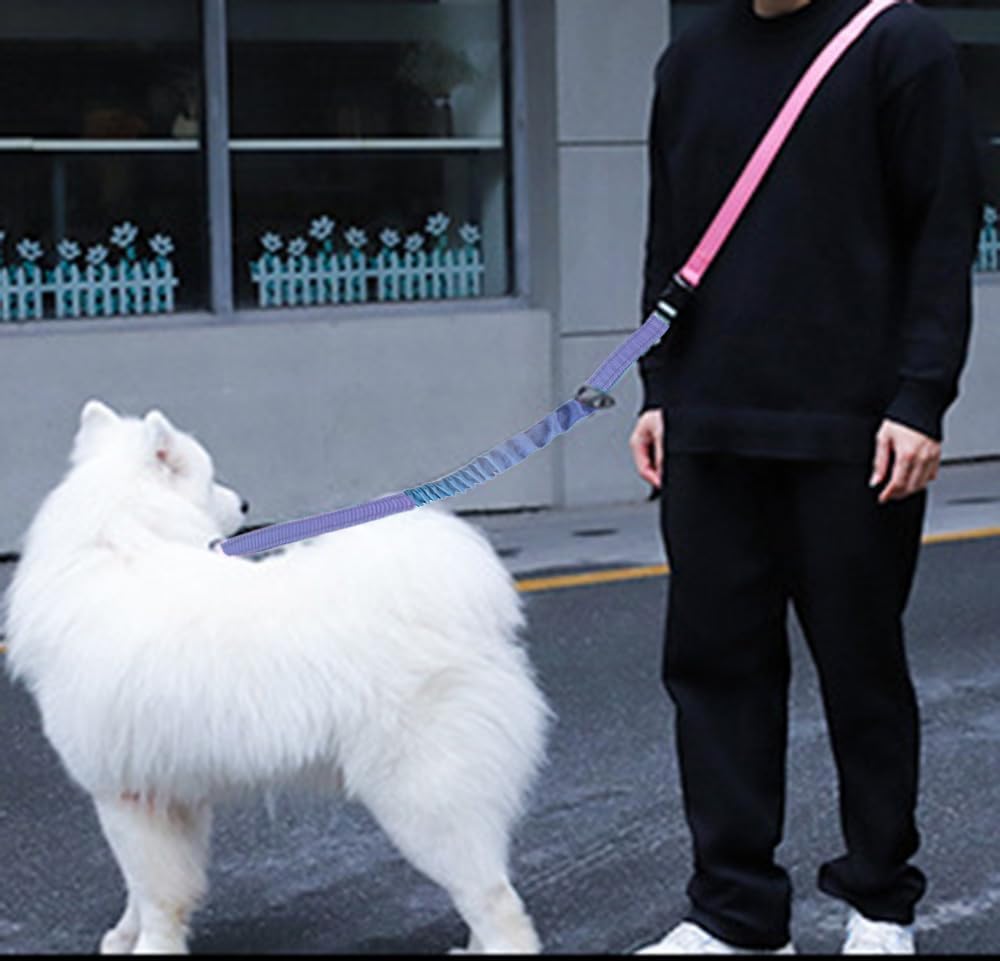 Hands Free Dog Leash for Large Medium Dogs Heavy Duty Bungee Reflective Adjustable Waist Leashes for Walking Running with Car Buckle 4-6FT (Purple)