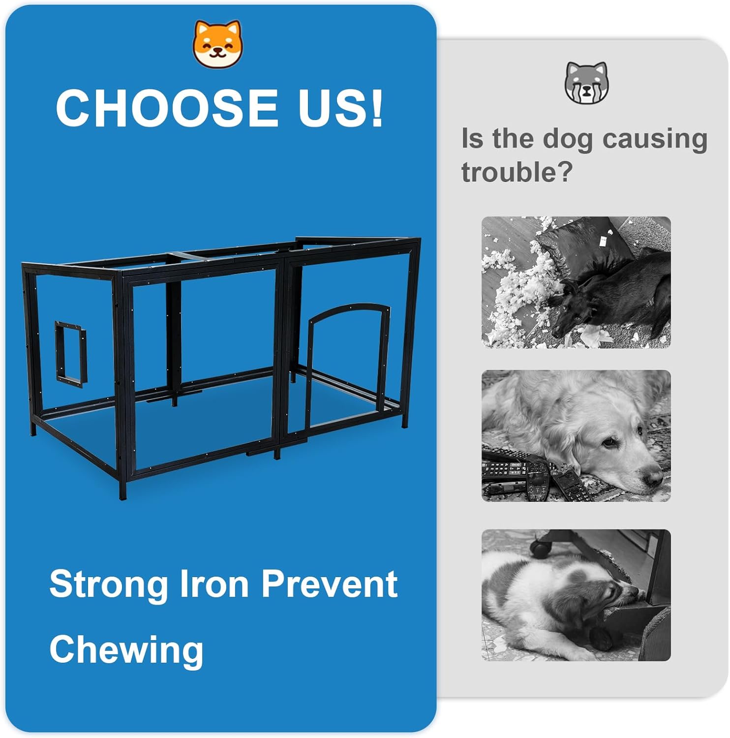 - Dog House Prevent Chewing: Is your beloved dog causing you trouble? Chewing tables, wires, sofas and so on. Choose our large dog house, which is made of solid wood with strong iron frame to prevent chewing