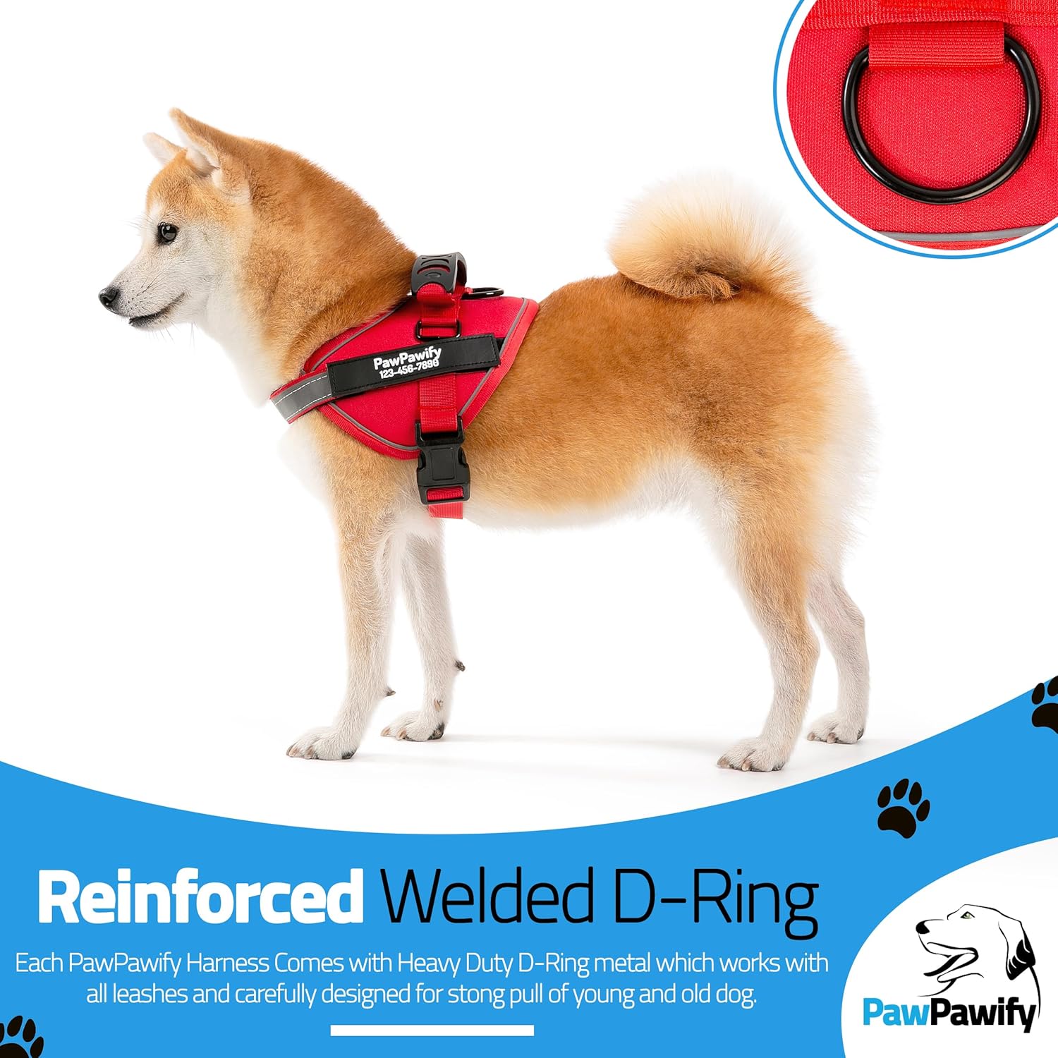 PawPawify Custom No Pull Dog Harness with Name and Phone Number, Heavy Duty Personalized Pet Vest to Prevent Tugging, Pulling, or Choking, Training and Walking (New Red, XXL (85-140 LBS))