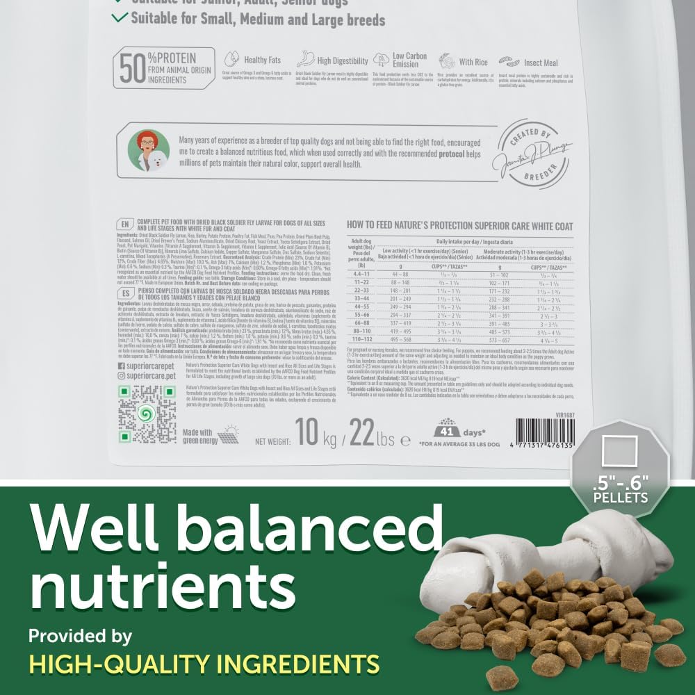 Nature's Protection Dry Dog Food for Puppy & Adult - High Protein Tear Stain Formula - Hypoallergenic Kibble for Small, Medium & Large Breed Dogs with Light Fur (Superior Care - Insect, 22 lb)