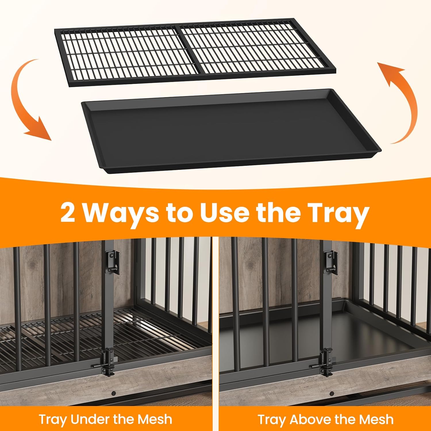 Dog Crate Furniture, Large Dog Crate Furniture, Dog Crate End Table for Large and Medium Dogs, Wooden Cage Kennel Furniture Indoor, Modern Dog Crate with Multi-Purpose Removable Tray
