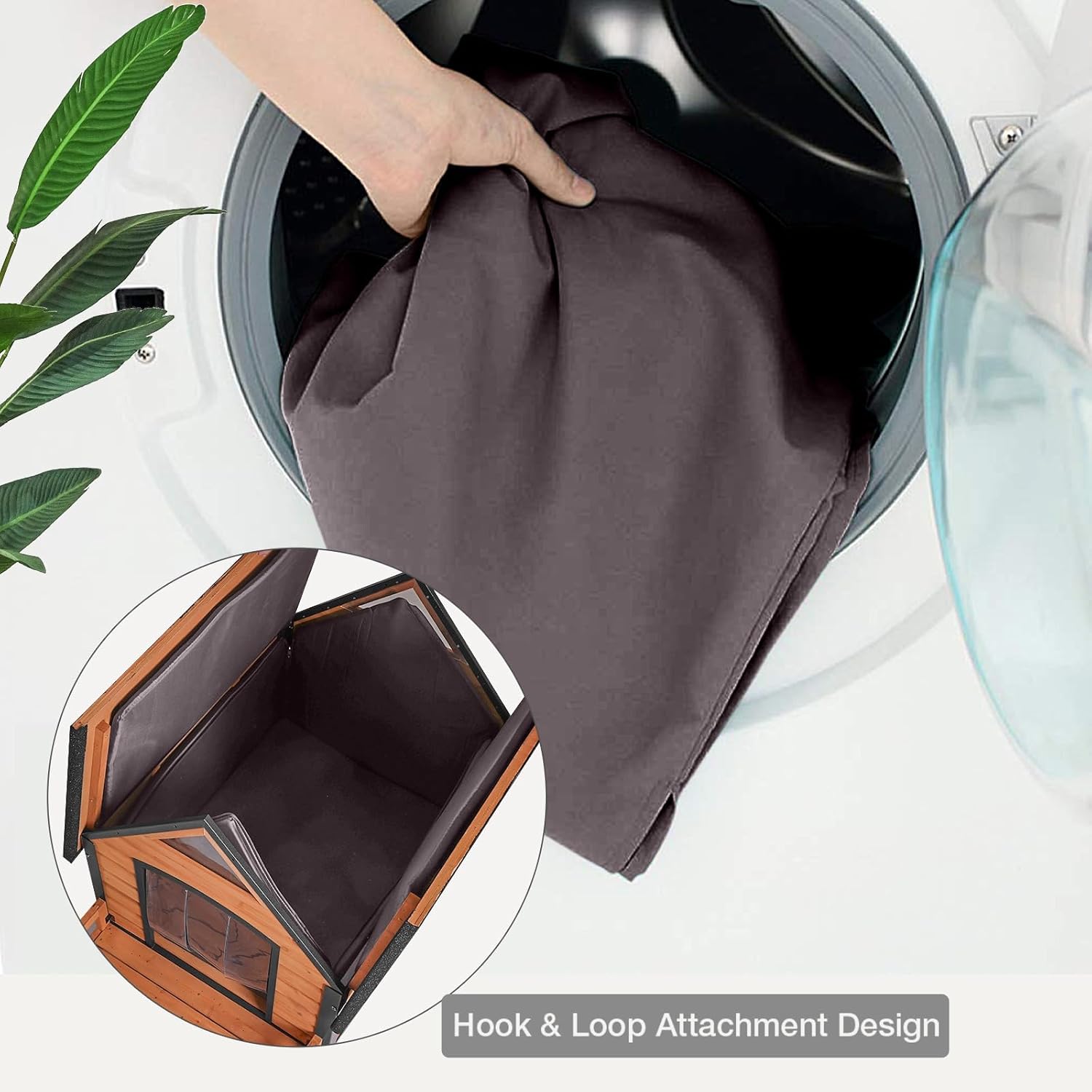 - Unique Insulation Liner Design: This dog house comes with a unque heated liner which is made of high density sponge and fabric with PVC coating. It can help your dogs keep from cold weather hurts, give them a warm house. The liner is easy to attach and also can be remove to machine-washable.