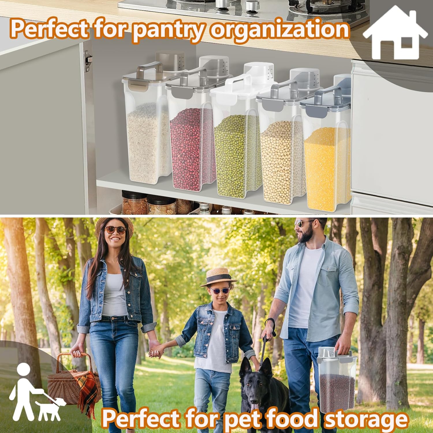 Dog Cat Food Storage Container, 5-7 Lbs Airtight Pet Food Storage Container with Easy-Pouring Spout and Portable Handle, Bird Seed Dispenser, Kitchen Organizer for Rice Cereal Flour -Light Grey