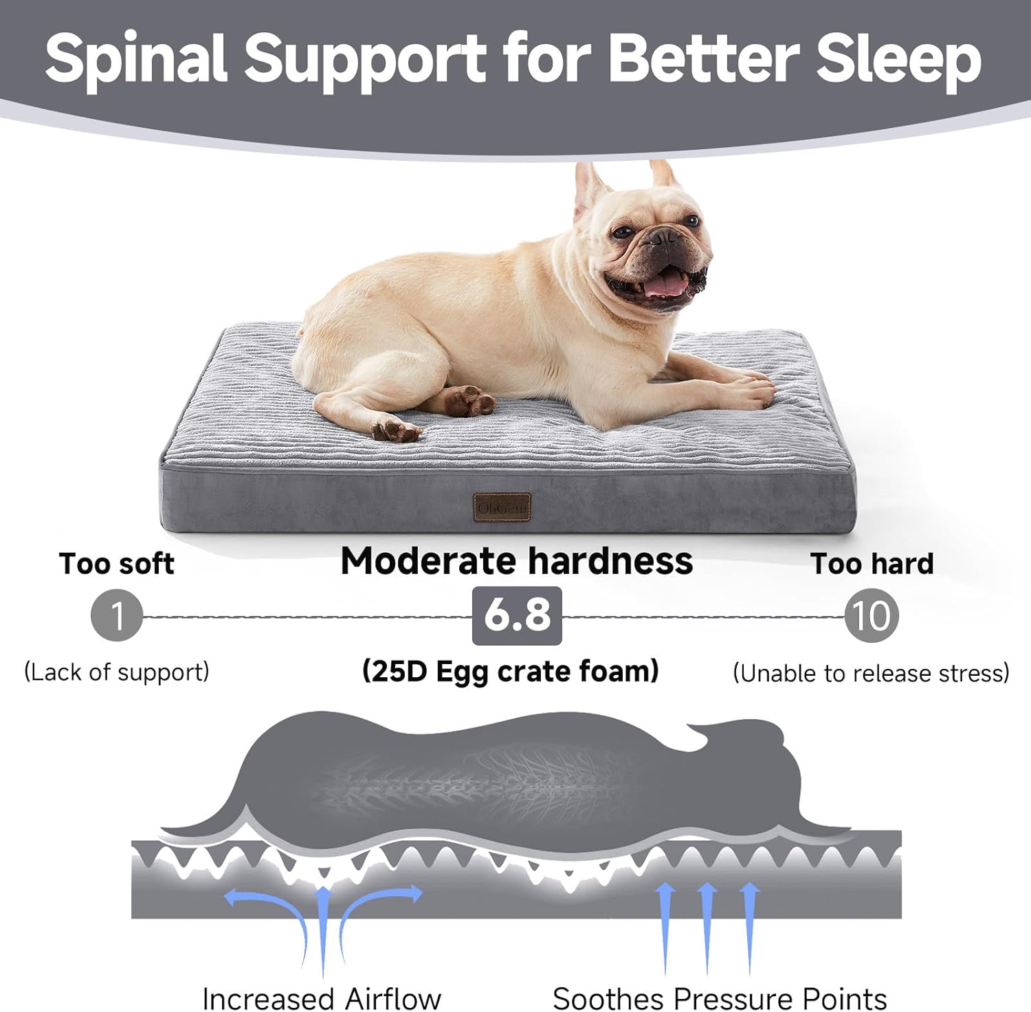 OhGeni Orthopedic Waterproof & Machine Washable Dog Bed for Small Medium Pets, Suitable for Crates, Cat Mat with 25D Egg Crate Foam, Removable Cover & Invisible Zipper, 30 Inches(Gray)