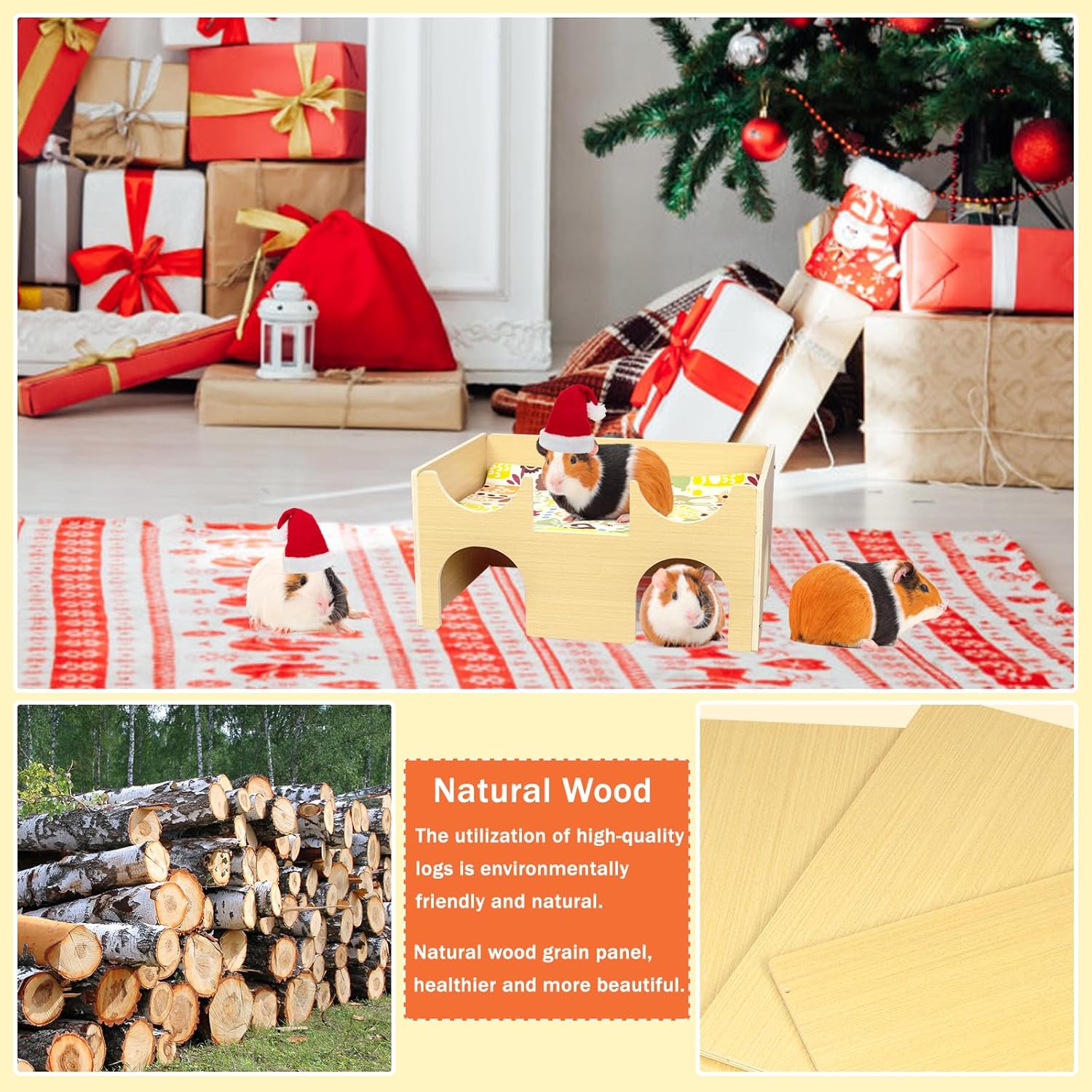 Large Guinea Pig Hideout, Sturdy Wooden Guinea Pig House, Small Animal Toys Accessories Bed Hut Habitats with Ramp and Mat, Easy to Install for Hamsters Bunny Rabbit Playing Hiding
