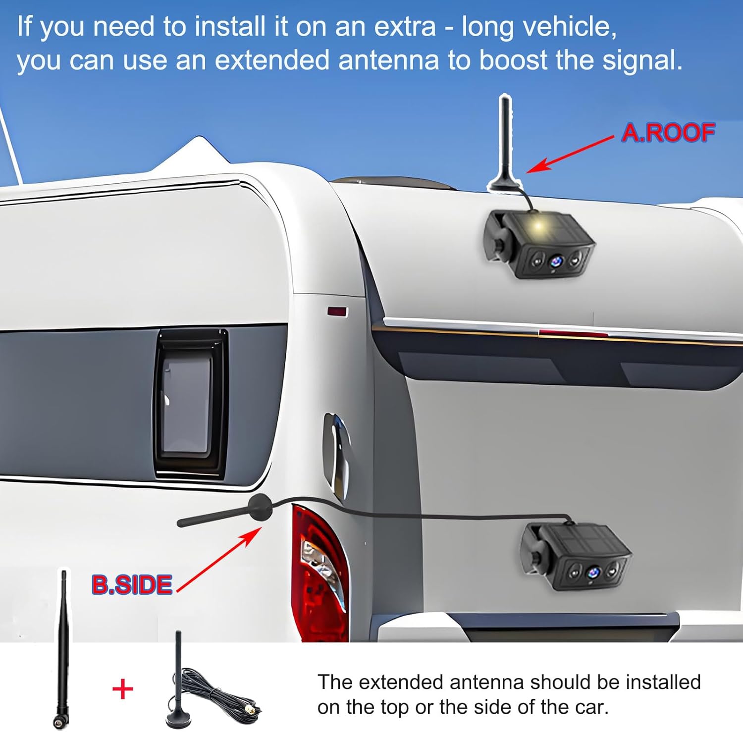 - Gesture control & Energy-Saving: The screen will automatically turn off when you don't need it. The car backup camera wireless will quickly enter the energy -saving sleep mode around 10s. You no longer need to manually turn off the rv camera power supply, which will reduce the charging frequency of trailer camera. it has a longer battery life, When the hand is within 4inch of the “Gesture control camera startup positio”, shake the hand 3 times to activate the display screen and camera.