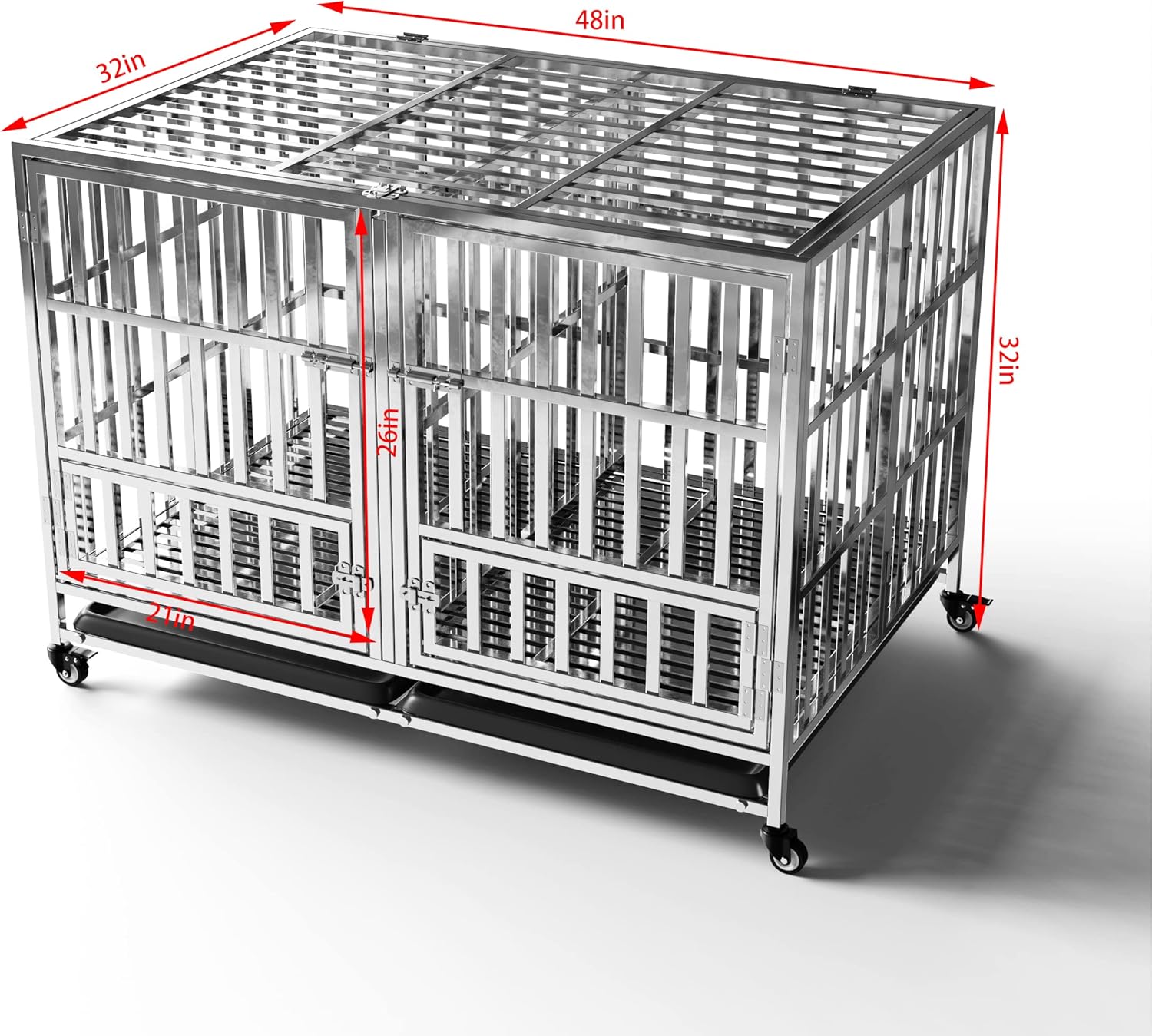 - Versatile: This stainless steel dog cage is available in 30", 37", 42", and 48" sizes, suitable for dogs of various breeds and sizes.
